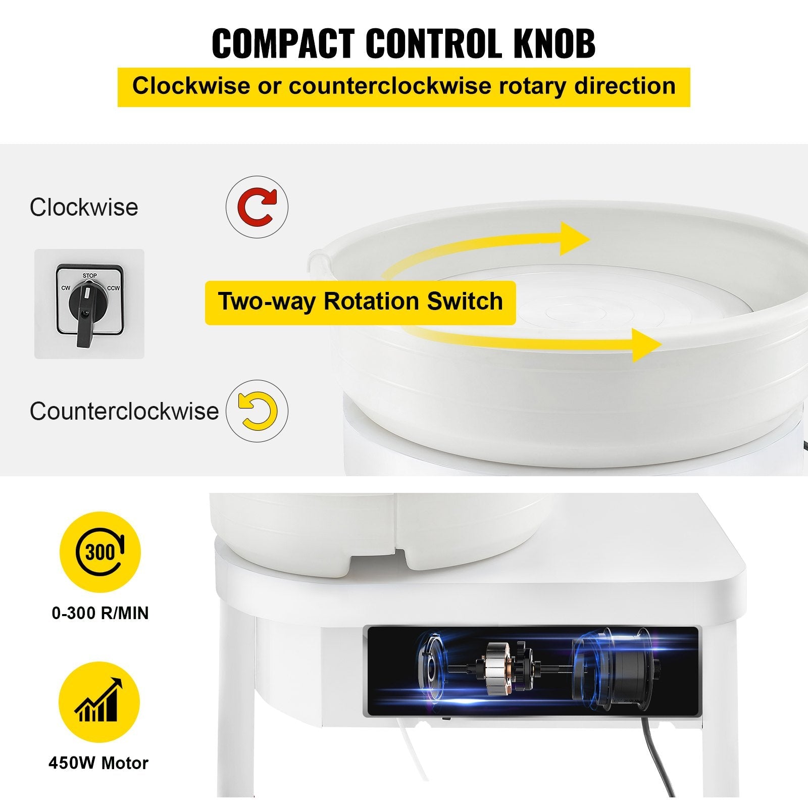 The VEVOR Pottery Wheel is a versatile and powerful tool designed for both beginners and experienced artists. Featuring a 36 cm diameter wheel and a robust 450W electric motor, this pottery forming machine delivers smooth and efficient clay shaping. The included foot pedal allows hands-free operation and precise speed control, making it easier to create detailed ceramic pieces. Built with stability and durability in mind, it’s perfect for DIY clay art and craft projects.
