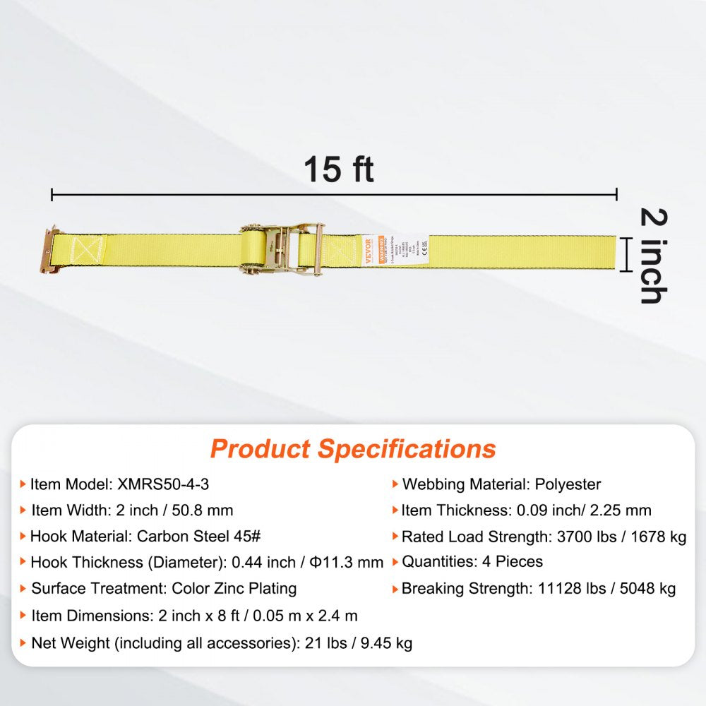 Secure your cargo with confidence using the VEVOR Ratchet Tie Down Straps, an 8-pack of heavy-duty, reliable straps designed for a wide range of applications. Each strap features a strong 4400 lb break strength and a rated load capacity of 1460 lbs, ensuring your cargo stays firmly in place during transport. Made with durable 2-inch wide polyester webbing and reinforced with coated carbon steel hooks, these straps resist wear and tear, corrosion, and provide long-lasting performance. Perfect for moving appliances, securing lawn equipment, or heavy cargo, these E-Track endless ratchet tie downs offer versatile, dependable support.