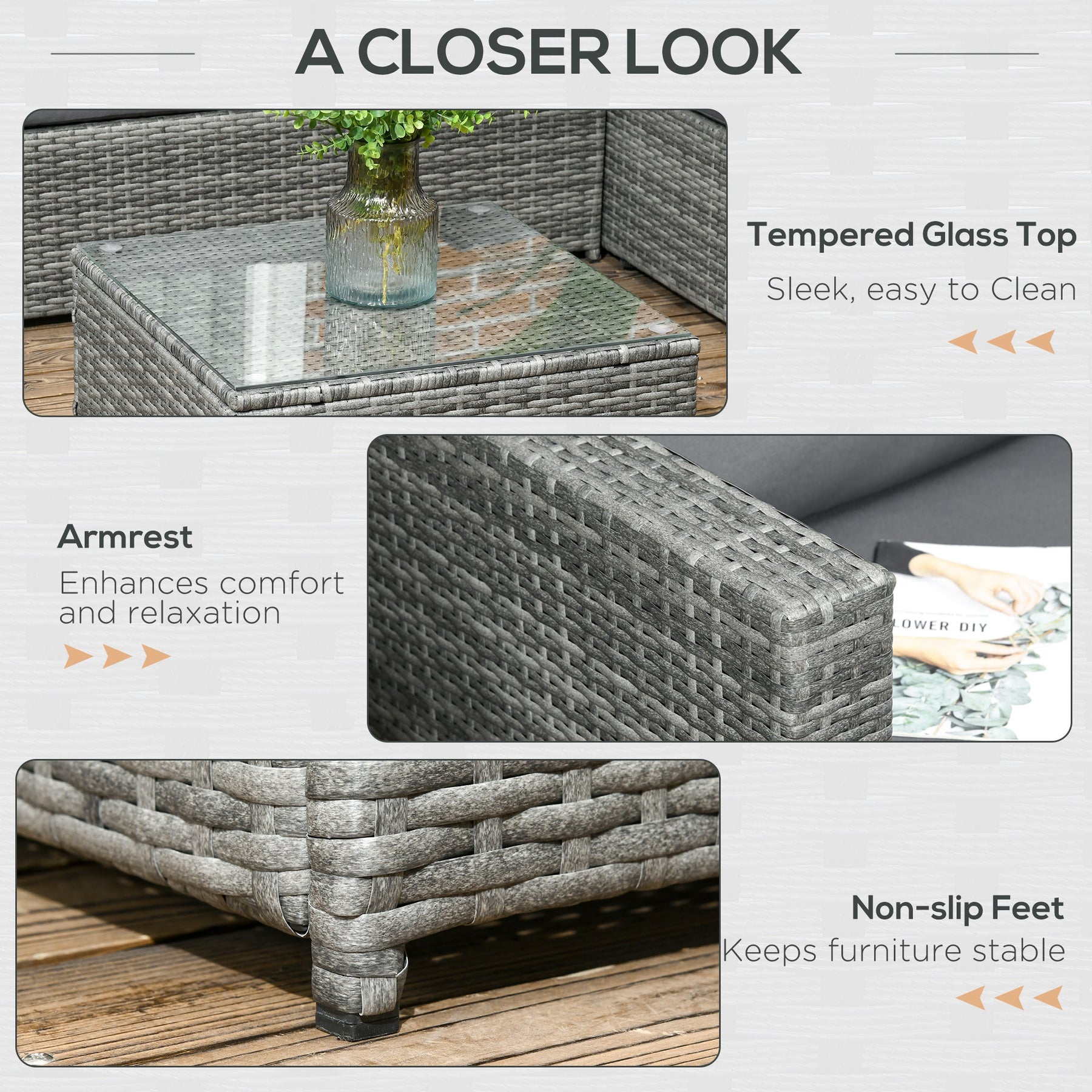 Create a cozy and stylish outdoor seating area with this 3-Piece Rattan Patio Furniture Set. Designed for comfort and durability, this set includes two two-seater sofas and a square tempered glass coffee table. The sleek glass tabletop adds both elegance and functionality, providing a solid surface for drinks, snacks, and decorative accents. Constructed with a sturdy metal frame wrapped in weather-resistant PE wicker, this patio set is built for long-lasting outdoor use. The plush seat cushions enhance comfort, and the removable, washable covers ensure easy maintenance. Perfect for patios, gardens, and outdoor lounging areas, this wicker furniture set combines contemporary style with practical convenience.