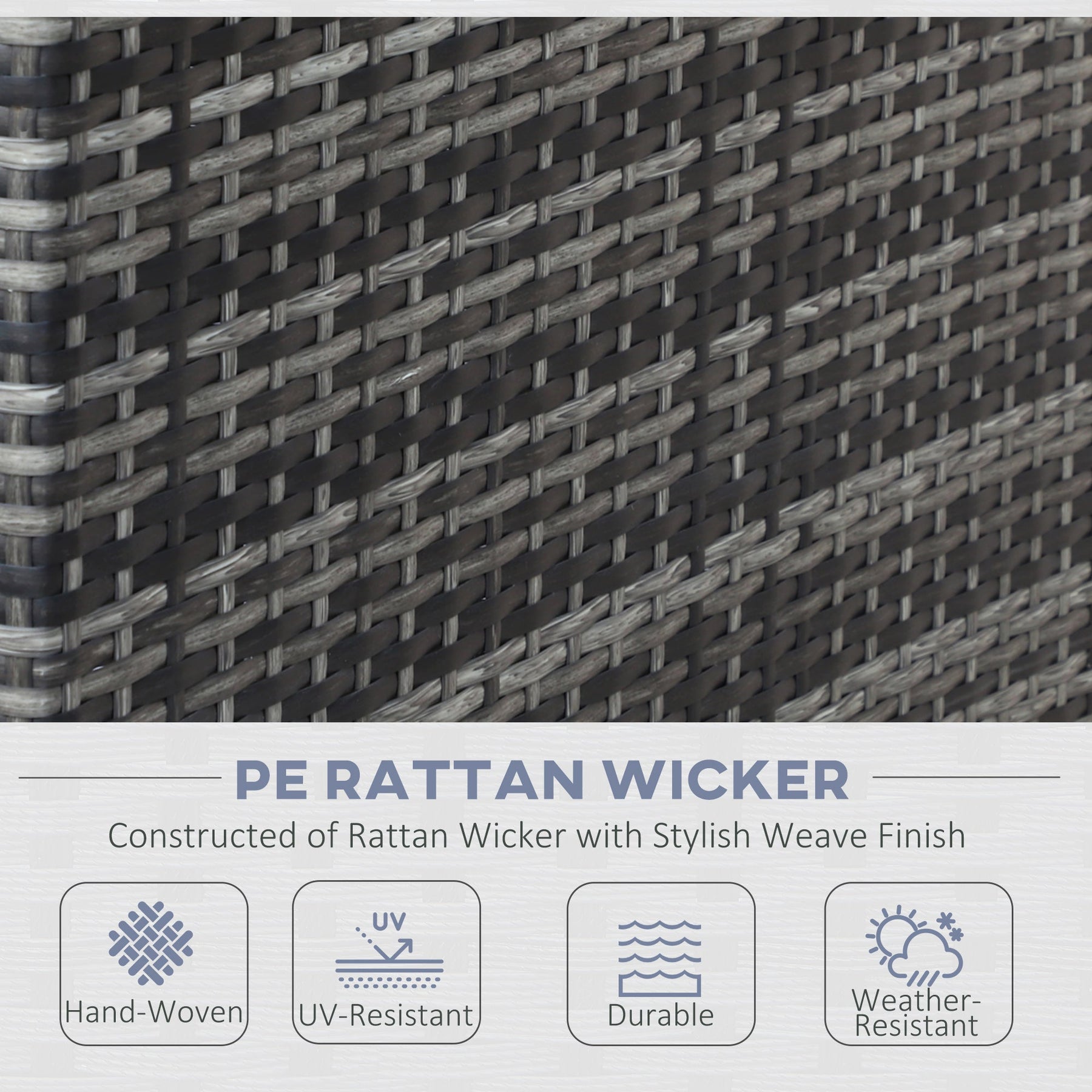 Powder-coated, rust-resistant metal frame wrapped in UV- and water-resistant PE rattan