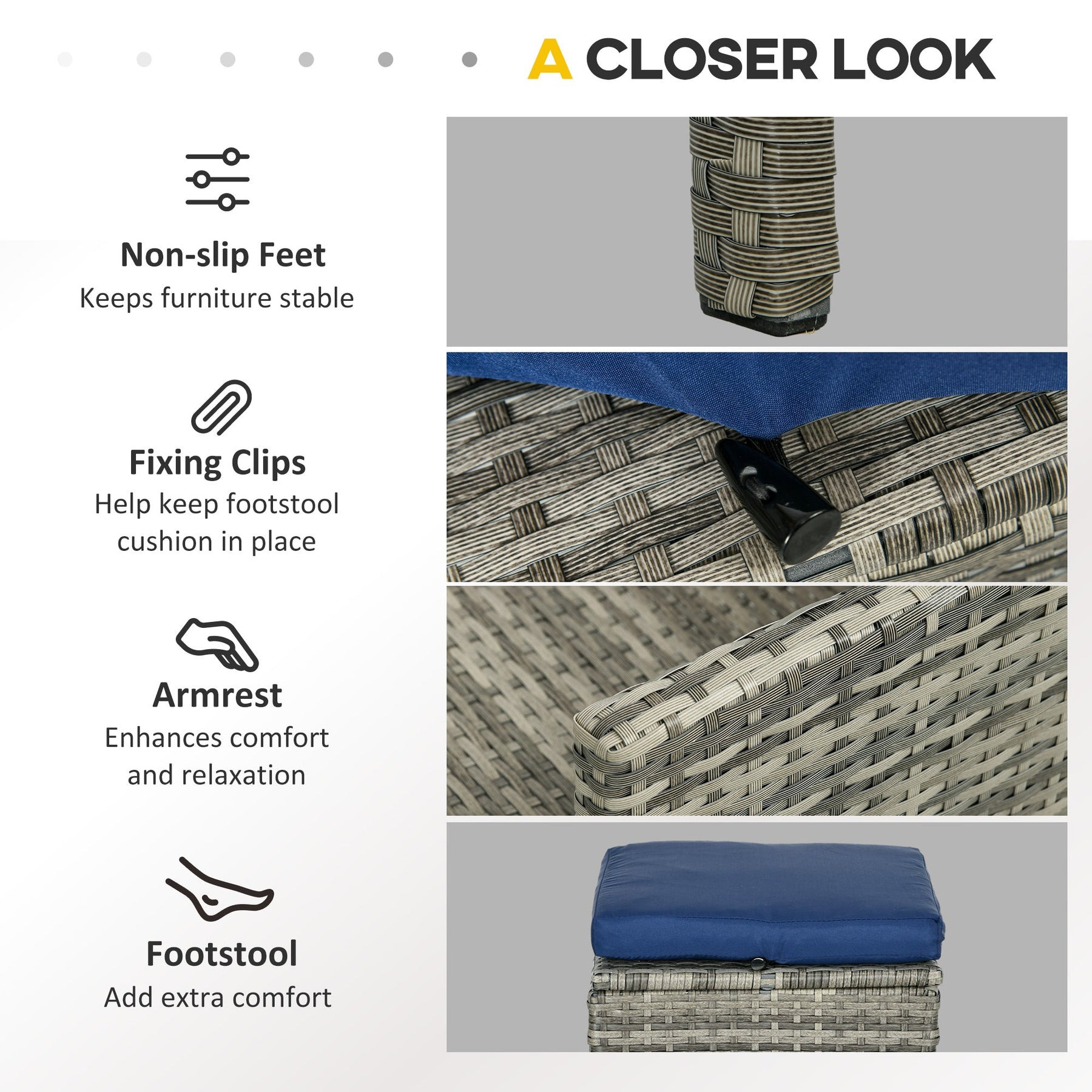 Enhance your outdoor living space with this stylish and versatile 5-piece rattan outdoor furniture set, perfect for relaxing and dining. The set includes a single-arm 2-seater lounger, a double-arm loveseat, two footstools, and a matching dining table, all of which can be arranged in a variety of configurations to fit your patio, garden, or balcony. Made with a galvanized steel frame and durable hand-woven double-sided PE rattan, this set is designed for long-lasting outdoor use. The UV and water-resistant rattan ensures that your furniture remains beautiful, even in the harshest weather conditions. To provide ultimate comfort, the set includes thick padded cushions and pillows for the sofa lounger and footrests, with covers that are water-repellent and stain-resistant. The dining table features a tempered glass top, while the matching footstools add flexibility to your setup. This functional dining set is perfect for enjoying outdoor meals, socializing, or simply lounging in comfort.
