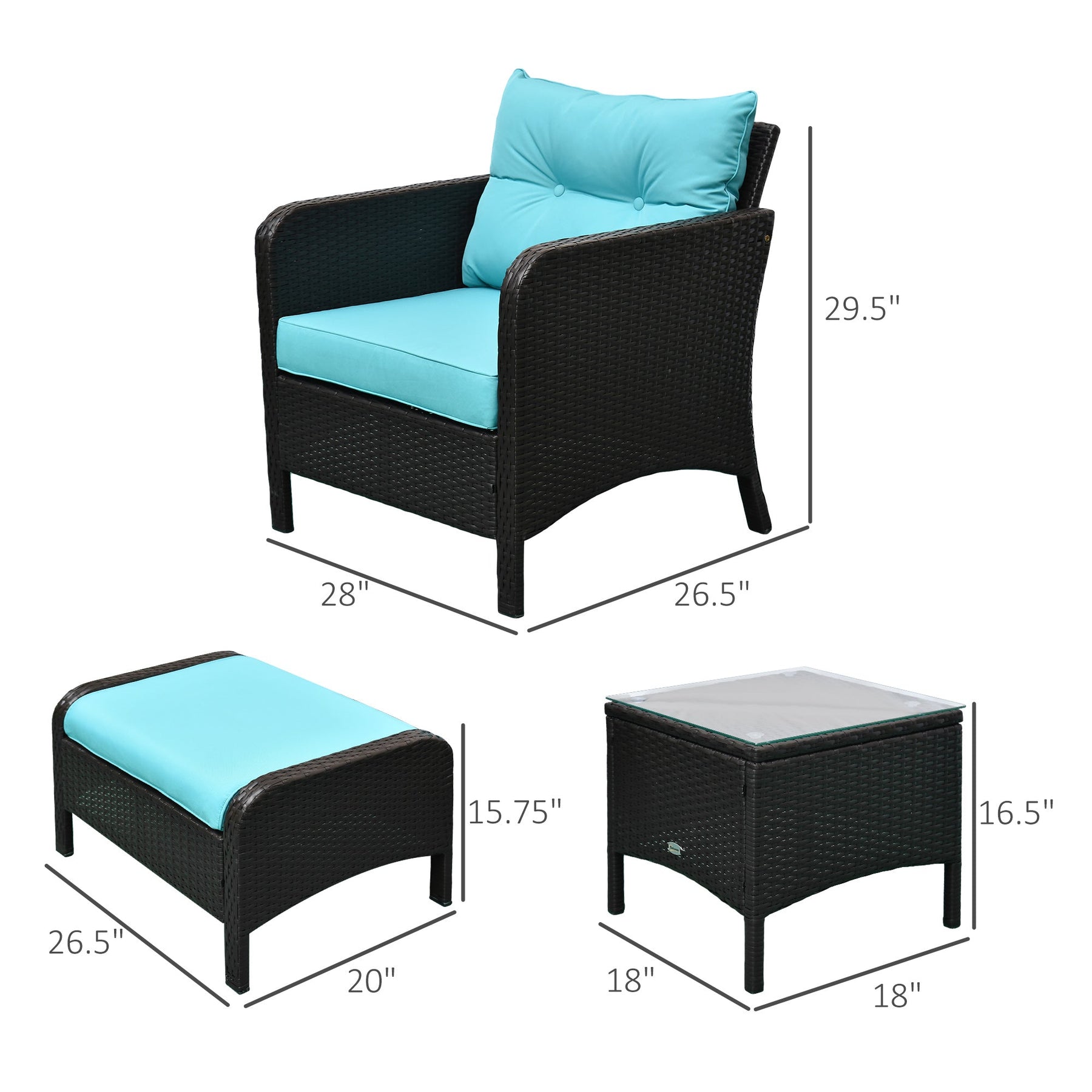 Armchair Dimensions: 28"L x 26.5"W x 29.5"H
