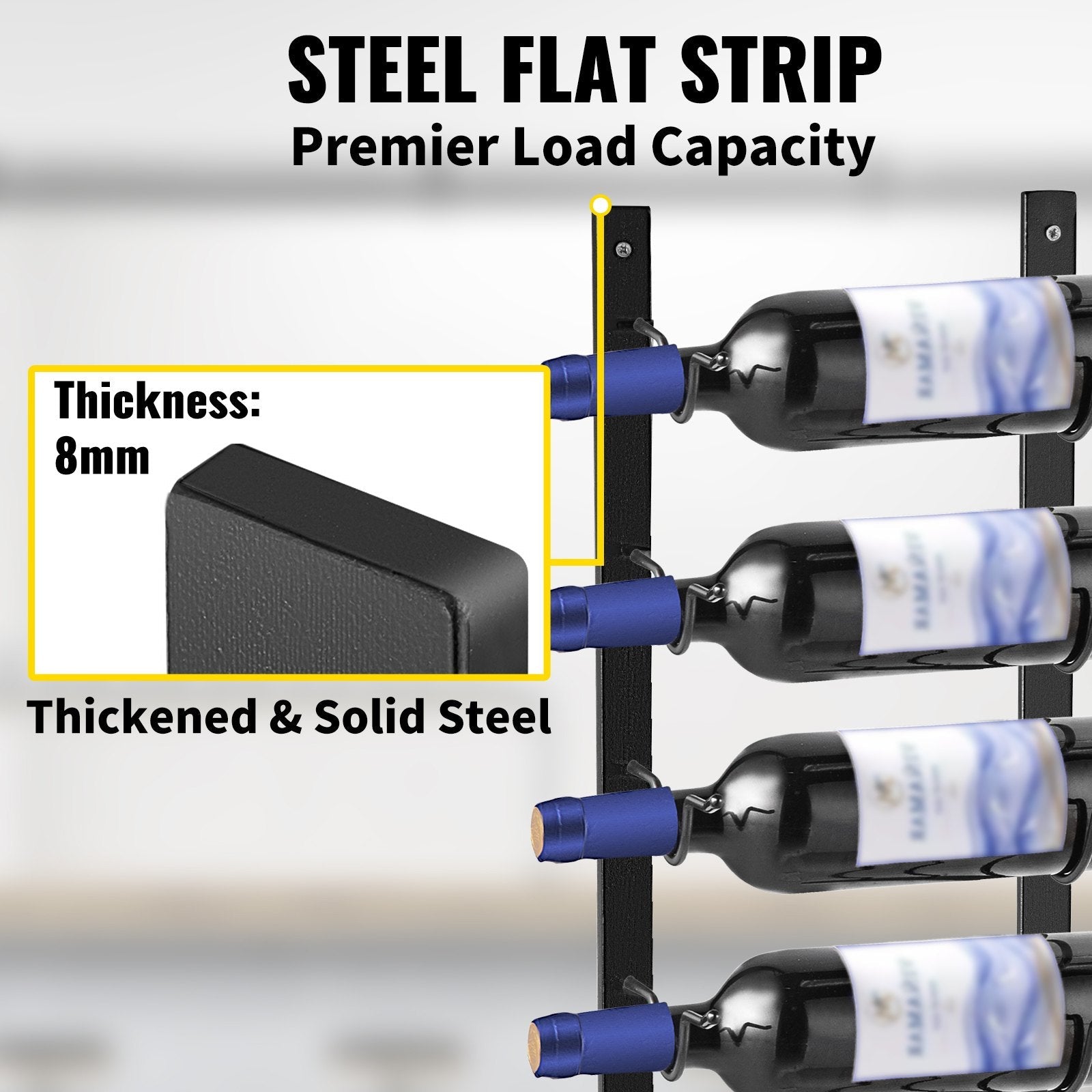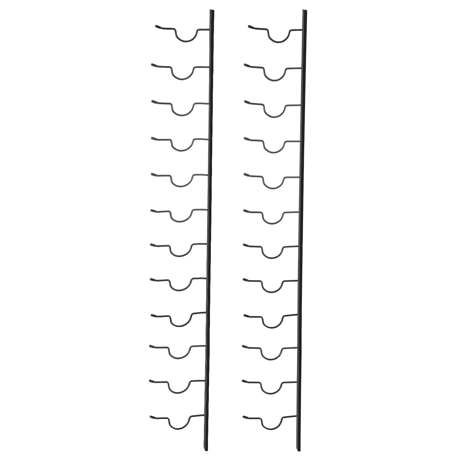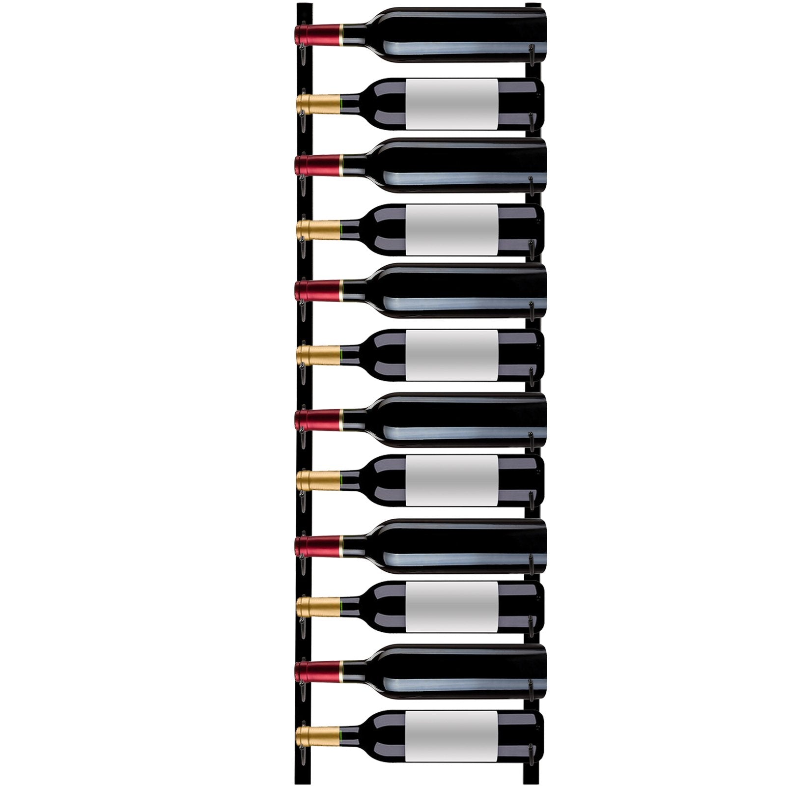 The VEVOR Wall Mounted Wine Rack is a sleek and stylish storage solution for wine enthusiasts. Crafted from durable black steel, this modern rack holds up to 12 bottles and includes a convenient integrated towel rack, making it both functional and decorative. Its vertical, forward-facing design saves space while enhancing any contemporary interior. Measuring 48 x 6 x 1 inches, it mounts easily on the wall to keep your wine collection organized and on display.