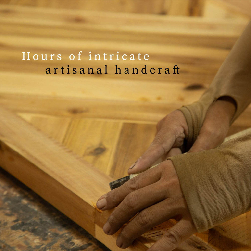 • Handcrafted Geometric Panels: Unique artisan details add artistic flair