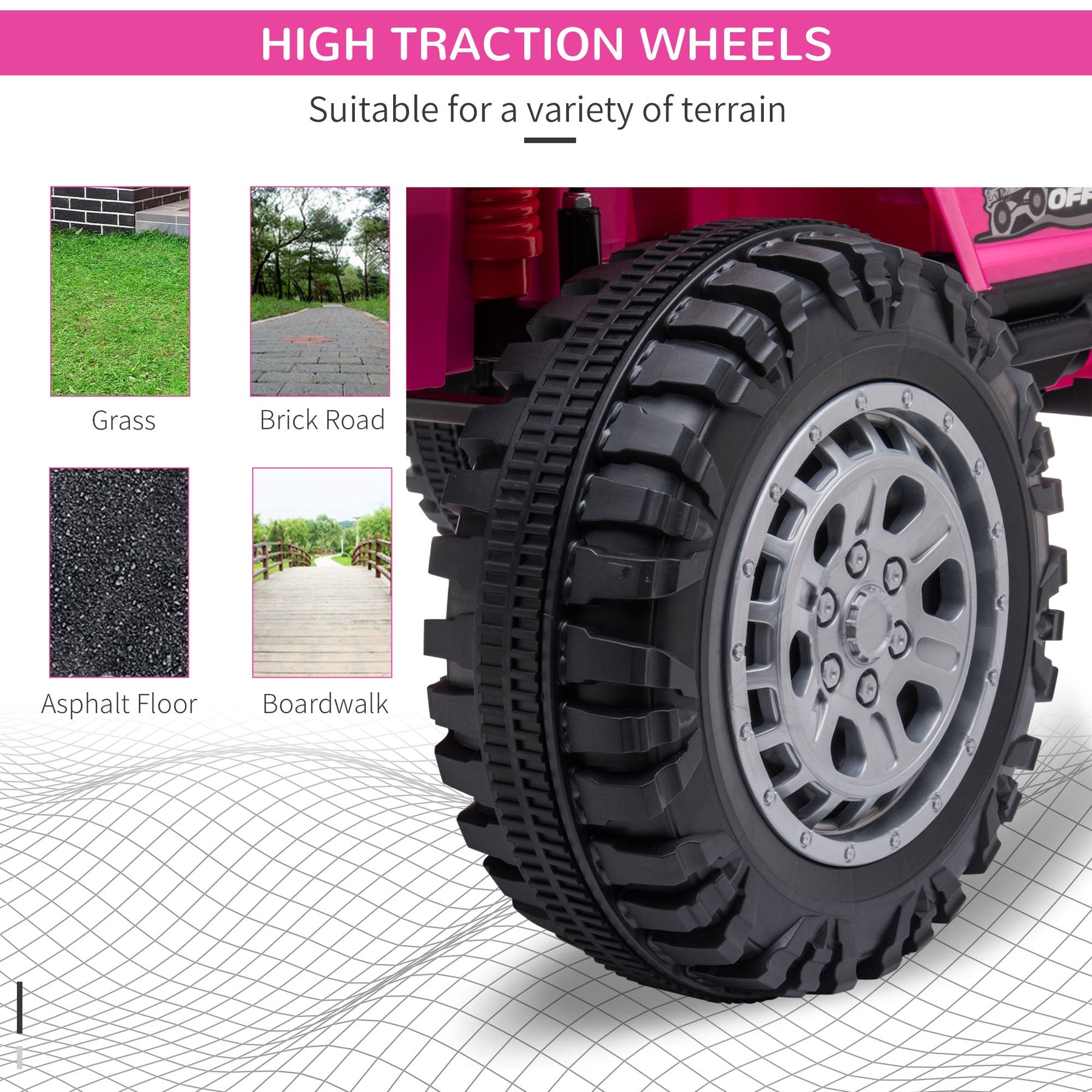 Smooth & Powerful Drive: Equipped with high-traction wheels and a shock-absorbing suspension system for stability on different surfaces.