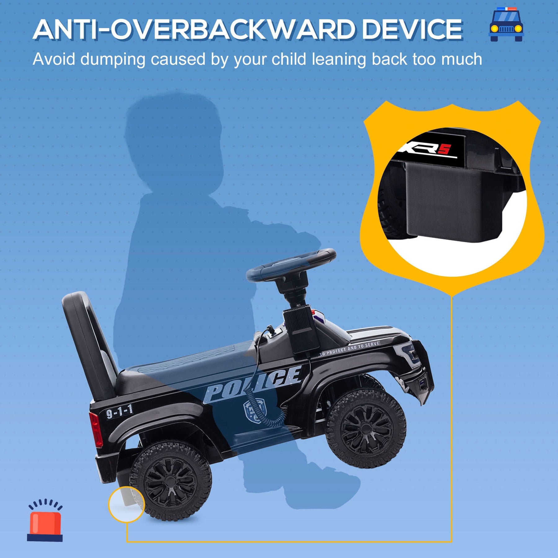 Let your little one feel like a real officer on duty with this police-style toddler sliding car! Designed for kids aged 18-60 months, it features a foot-to-floor design that encourages active play while strengthening their legs. The interactive steering wheel and megaphone enhance the driving experience, making it a fun and realistic ride. A hidden storage compartment under the seat provides space for toys and snacks, ensuring everything your child needs is within reach. Built from durable PP material, this ride-on car supports up to 55 lbs and includes anti-fall devices for added safety. With a wide seat and high backrest, comfort is a priority, making it a perfect gift for little adventurers.