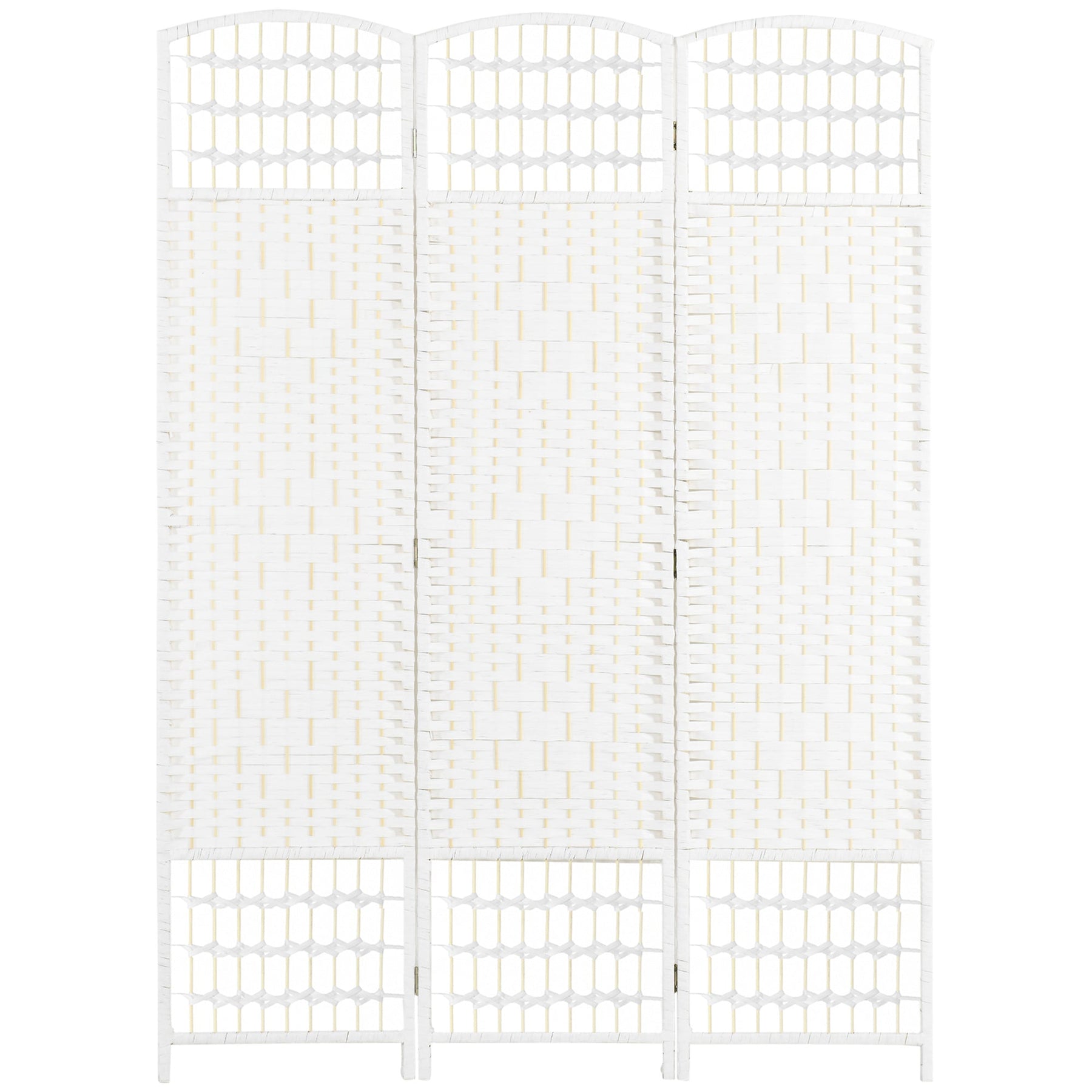 Enhance your home with the chic and functional 6-panel room divider. Perfect for creating privacy within open spaces, this hand-woven partition adds rustic charm with its intricate woven pattern made from paper rope and bamboo sticks. The solid wooden frame and curved arch top bring a natural and cozy ambiance to any room. Designed with metal hinges for easy folding, this screen offers flexibility, allowing you to transform your space effortlessly. Whether you need privacy or want to create intimate areas within a larger room, this divider provides both style and practicality without the need for assembly.