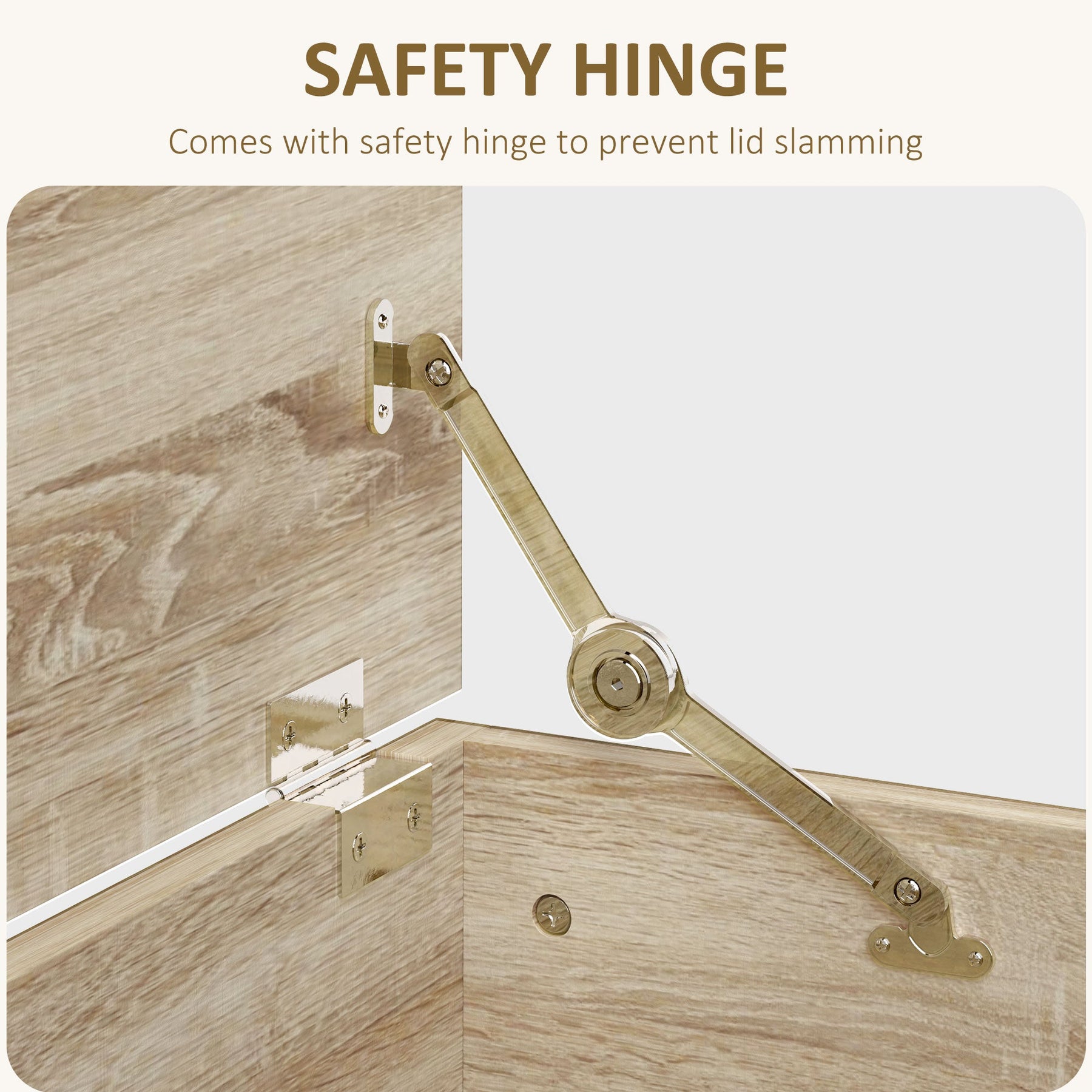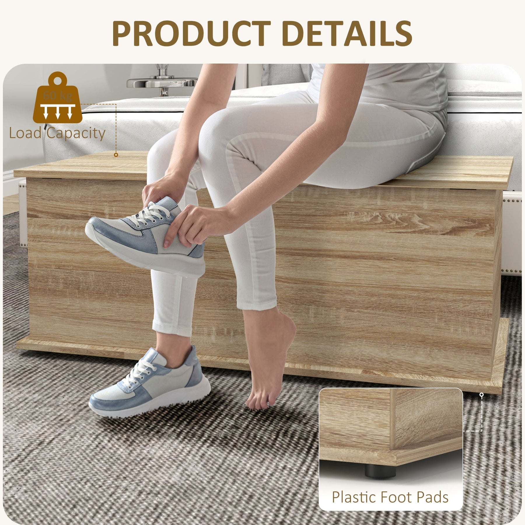 HOMCOM 39.5" Storage Chest with 2 Safety Hinges, Storage Box Organizer with Flip-Top Lid, Entryway Storage Bench, Oak