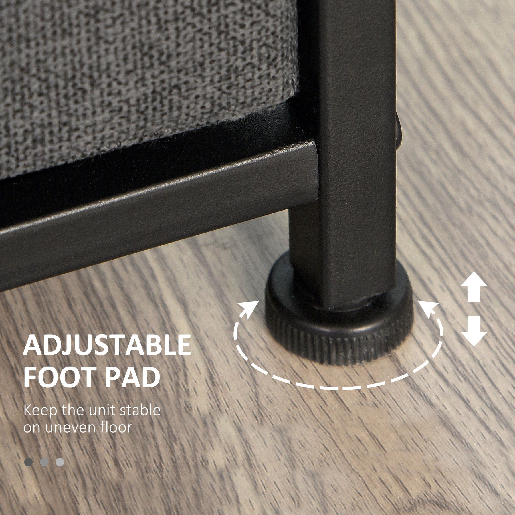 Durable Construction: Made with a sturdy powder-coated steel frame and MDF top. The reinforced linen fabric drawers resist sagging when full and glide smoothly.