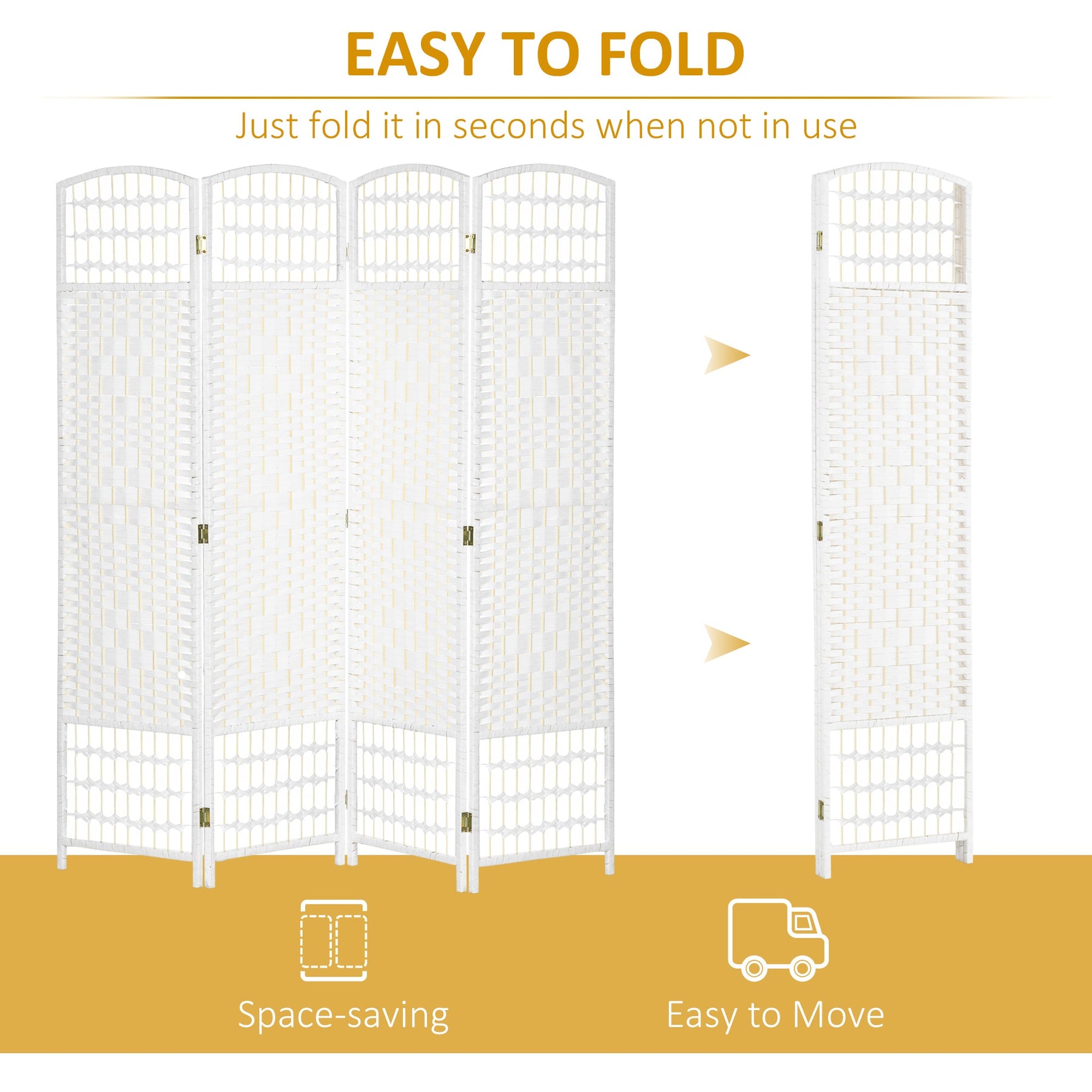 HOMCOM 4-Panel Folding Room Separator: Portable Privacy Screen Indoor Office Divider, White