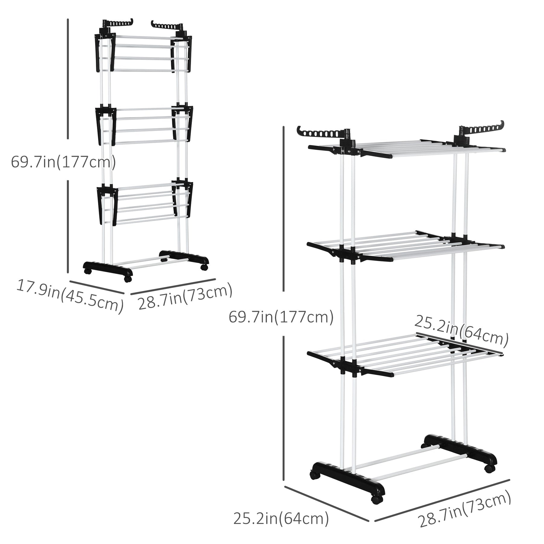 4-Tier Design: Offers ample space for drying towels, shirts, socks, hats, coats, dresses, and shoes.