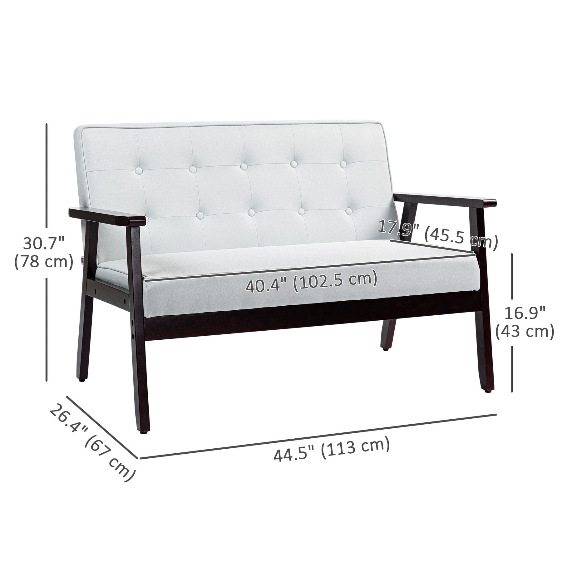 This two-seater sofa is the perfect blend of comfort, style, and functionality. At 44.5" (113 cm) wide, it's ideal for bedrooms or small living rooms, offering a cozy spot for relaxation or a place to chat with a friend. Upholstered in breathable, linen-feel fabric, this loveseat features a 4.3" (11 cm) padded seat cushion and overstuffed back cushions to provide the softness and support you deserve. The solid rubber wood frame ensures durability, while the tufted back and clean lines add a modern touch to your space. This compact yet comfortable sofa is perfect for any room that needs a stylish and functional seating solution.