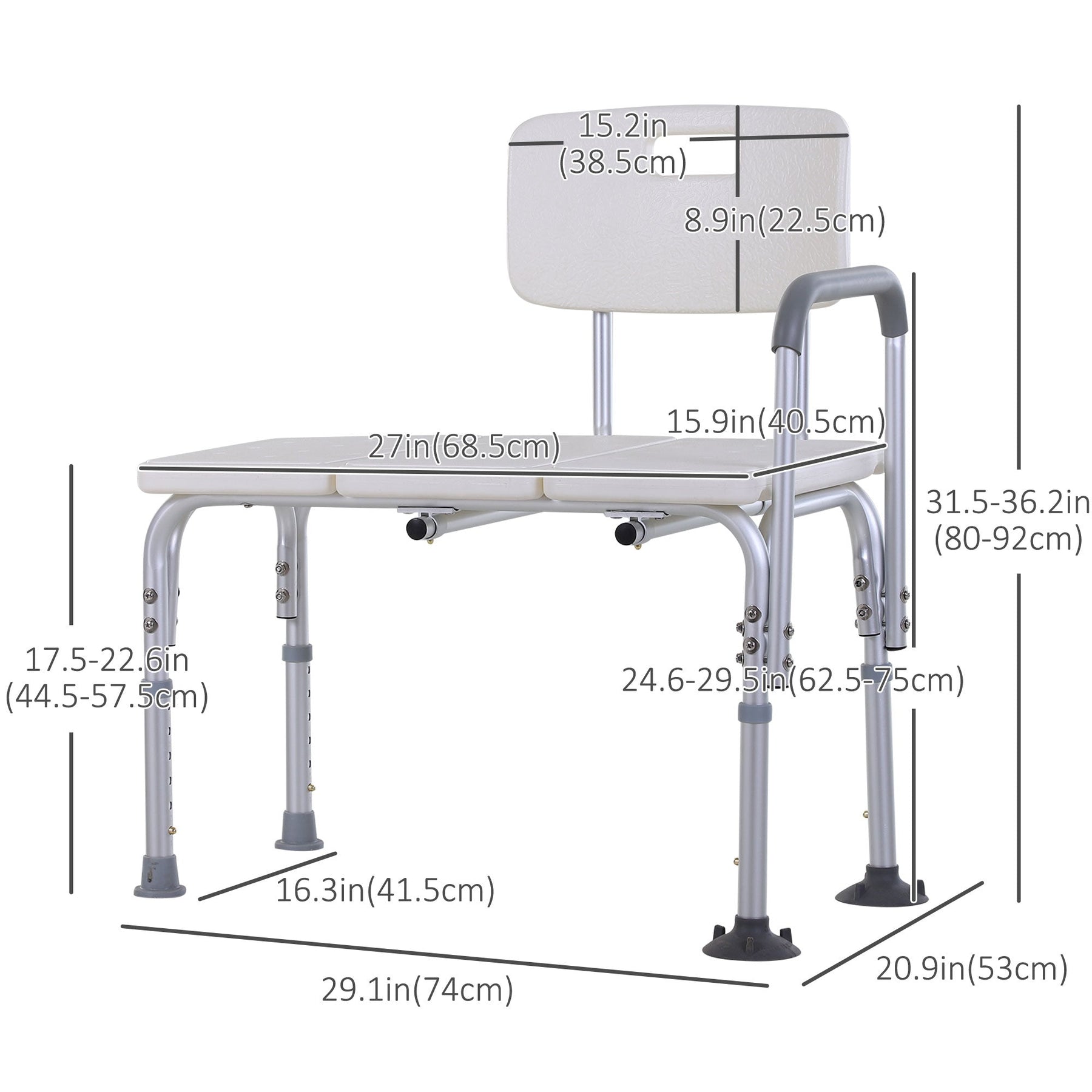 This adjustable shower chair is designed for maximum comfort and convenience, with a 6-level adjustable seat height to accommodate a variety of users, including the elderly, injured, or pregnant individuals. Constructed from durable aluminum alloy and high-density plastic, this chair is moisture-resistant and corrosion-resistant, making it ideal for use in wet bathroom environments. The extra-wide seat and a weight capacity of 300 lbs (136 kg) provide added stability and comfort for those who require extra assistance during showering or bathing. The non-slip feet ensure the chair remains steady on glossy, wet surfaces, offering peace of mind during use. This versatile bath chair can also serve as a temporary crutch, providing support for users to sit up safely without risk of falling.