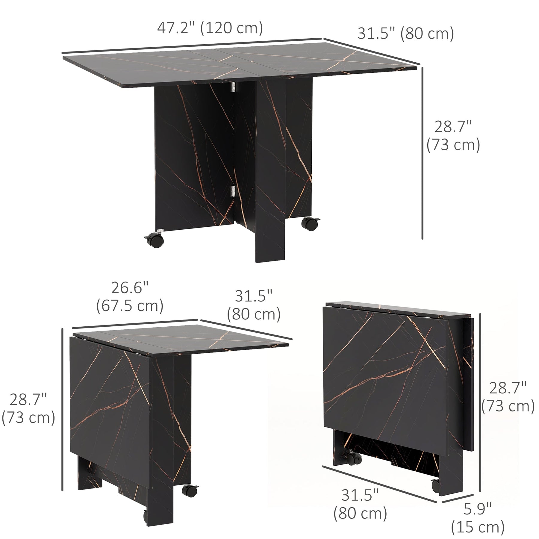 HOMCOM 6-Person Folding Dining Table with Wheels Drop Leaf Faux Marbled Black Side Table for Kitchen Dining Room