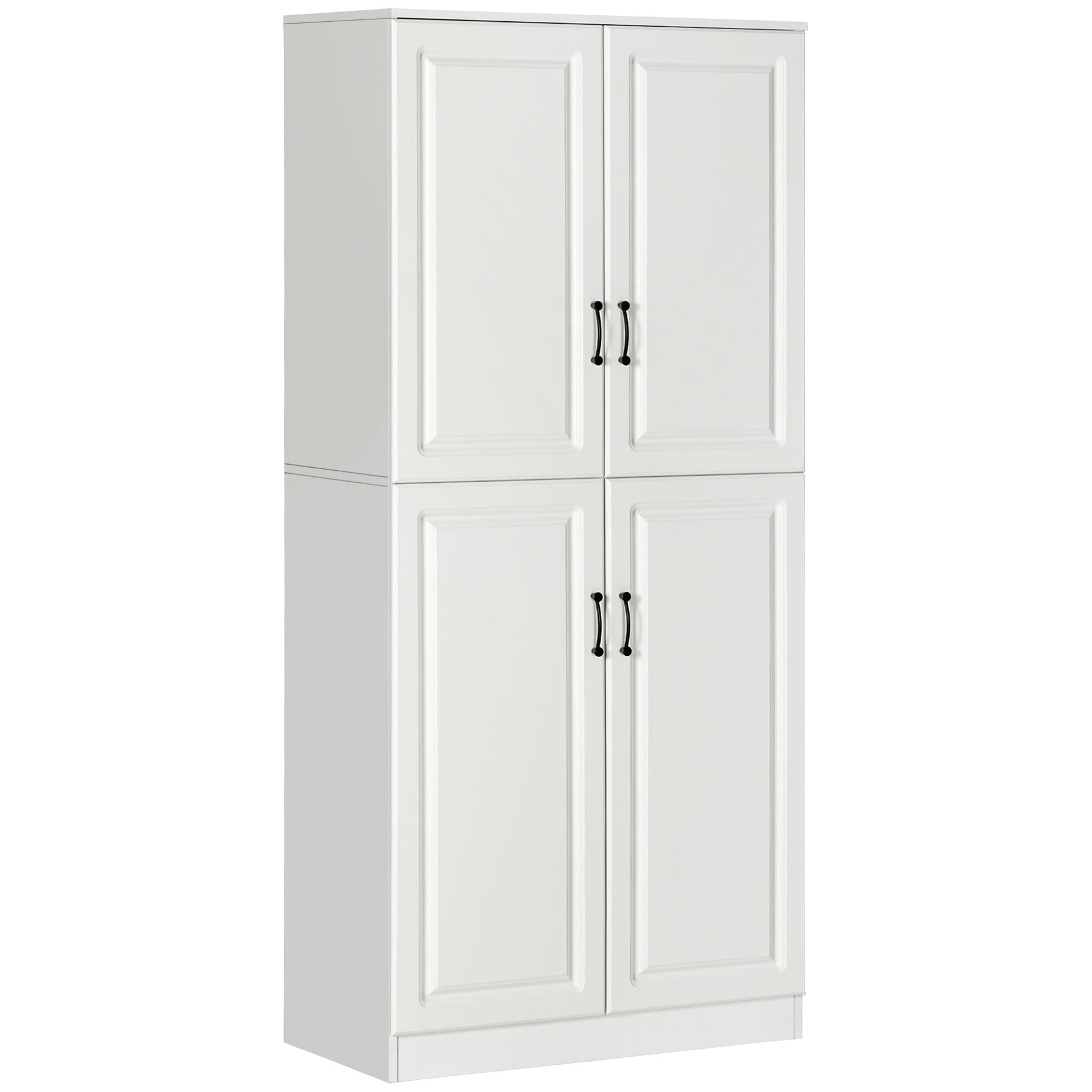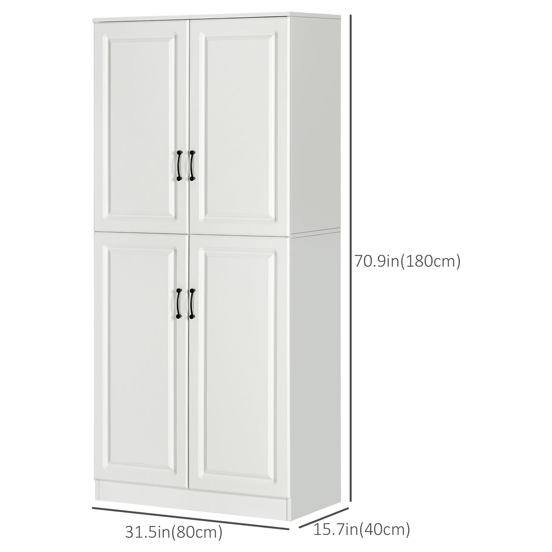 HOMCOM 71" Freestanding Kitchen Pantry Cabinet, Storage Cabinet with 4 Hinged Doors and Adjustable Shelves, White