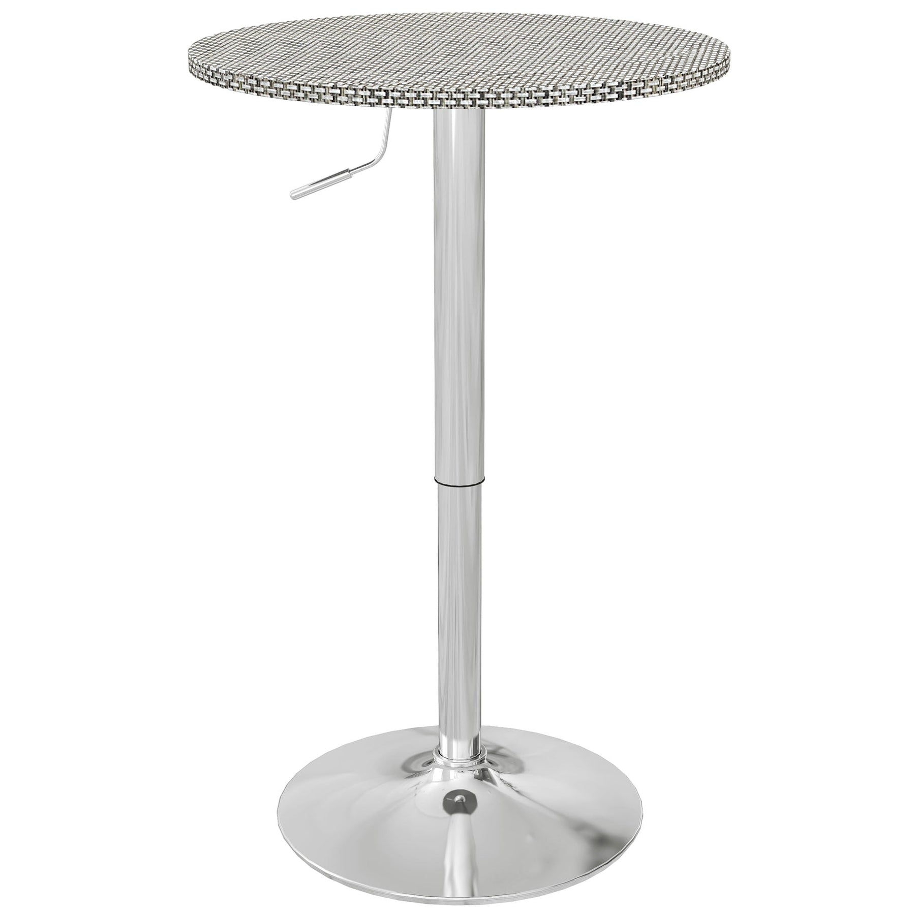 This modern bistro table combines the timeless elegance of a tall pub table with contemporary style to fit seamlessly into your kitchen, bar, or patio. With an adjustable height feature, this versatile table can be set anywhere from 27" (counter height) to 37" (table height) using simple gas hydraulics, making it perfect for both seated and standing guests. The chic PE rattan covering on the tabletop offers a water-resistant, easy-to-clean surface that adds sophistication and functionality. The electroplated steel chrome base is sturdy and stylish, offering both stability and durability while protecting your floors with non-slip foot pads. Whether used for casual dining, enjoying drinks with friends, or enhancing your outdoor space, this adjustable height bistro table will elevate any setting.