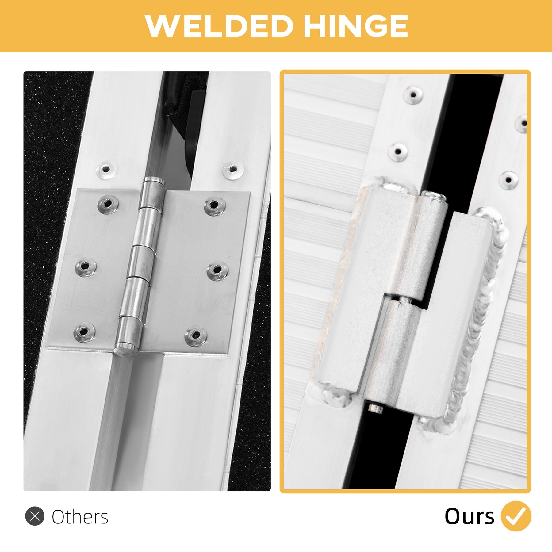 Ensure the safety and mobility of your loved ones with this premium aluminum wheelchair ramp. Featuring horizontal grooves for enhanced friction and slip resistance, this ramp minimizes the risk of falls. The high walls on both sides provide additional security, while the top transition plate ensures a smooth and safe entry. This ramp can be securely bolted to the ground for extra stability. Designed for both indoor and outdoor use, it offers users greater independence, whether moving around the home, garden, or from car to sidewalk. The rust-proof and corrosion-resistant aluminum construction supports up to 600 lbs., ensuring long-lasting durability. Its foldable design makes it easy to transport and store, taking up minimal space when not in use.