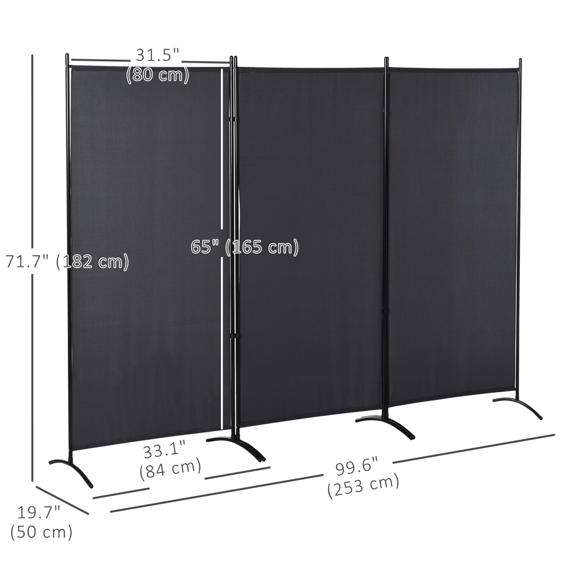 Dimensions: Overall dimension of 99.6" W x 71.7" H x 19.7" D (253 x 182 x 50 cm), with each panel measuring 33.1" L x 19.7" W x 71.7" H (84 x 50 x 182 cm).