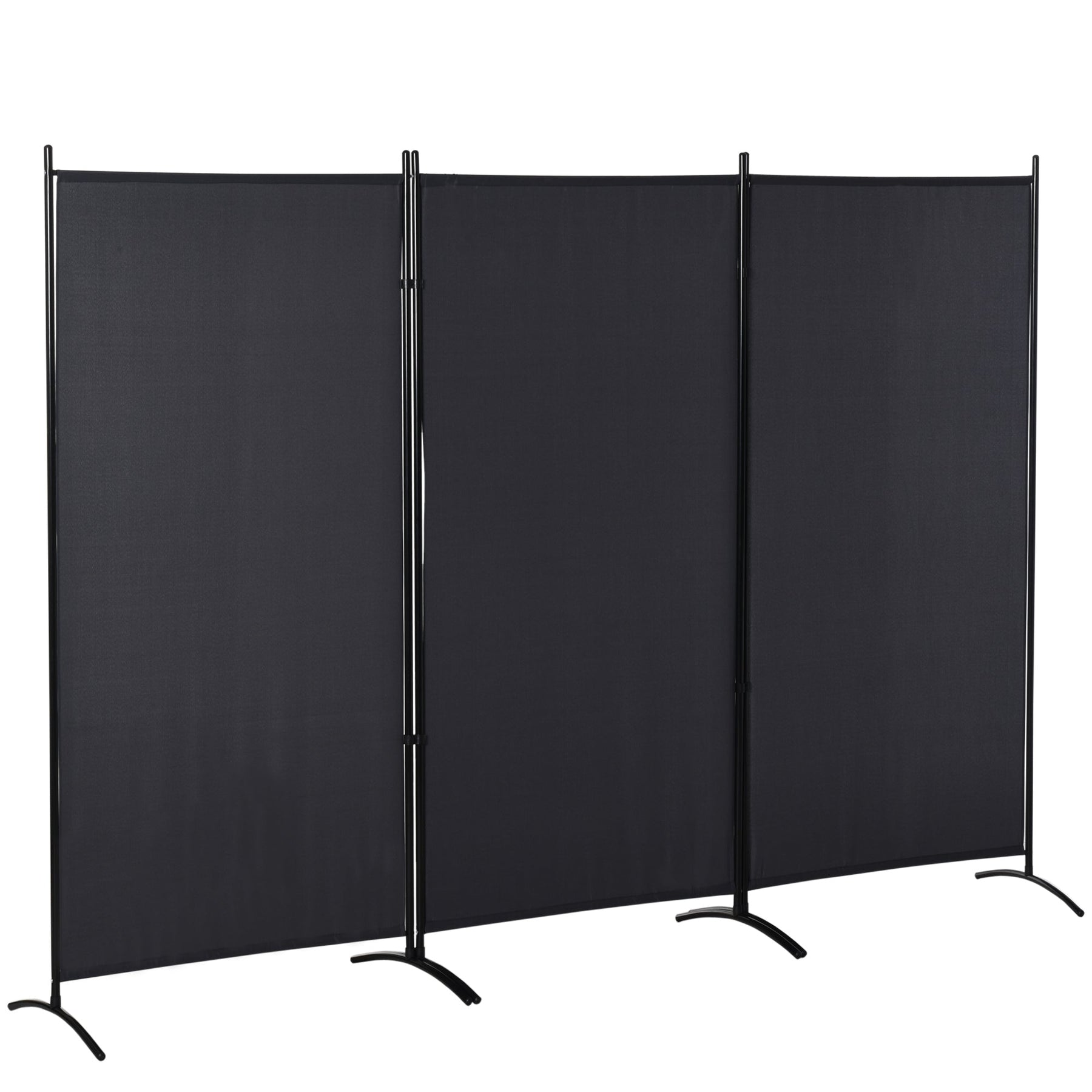 This stylish three-panel room partition screen provides a perfect blend of privacy and elegance. Ideal for dividing large rooms or creating a smaller, enclosed private space within a single room, it allows you to see the other side while maintaining your personal space. With dimensions thoughtfully designed to cater to the average height of most individuals, this partition ensures both functionality and comfort. Its minimalist style, featuring a solid color and clean lines, brings a touch of sophistication to your living room, bedroom, or home office. Crafted from a durable powder-coated metal frame with connecting hinges and anti-slipping feet, this room divider remains stable and secure. The double-hinged folding design allows you to quickly adjust the layout, whether you need to reconfigure the room or save space by folding it up and storing it in a corner when not in use. Easy to assemble, this partition screen is the perfect way to enhance the flexibility and privacy of your space.