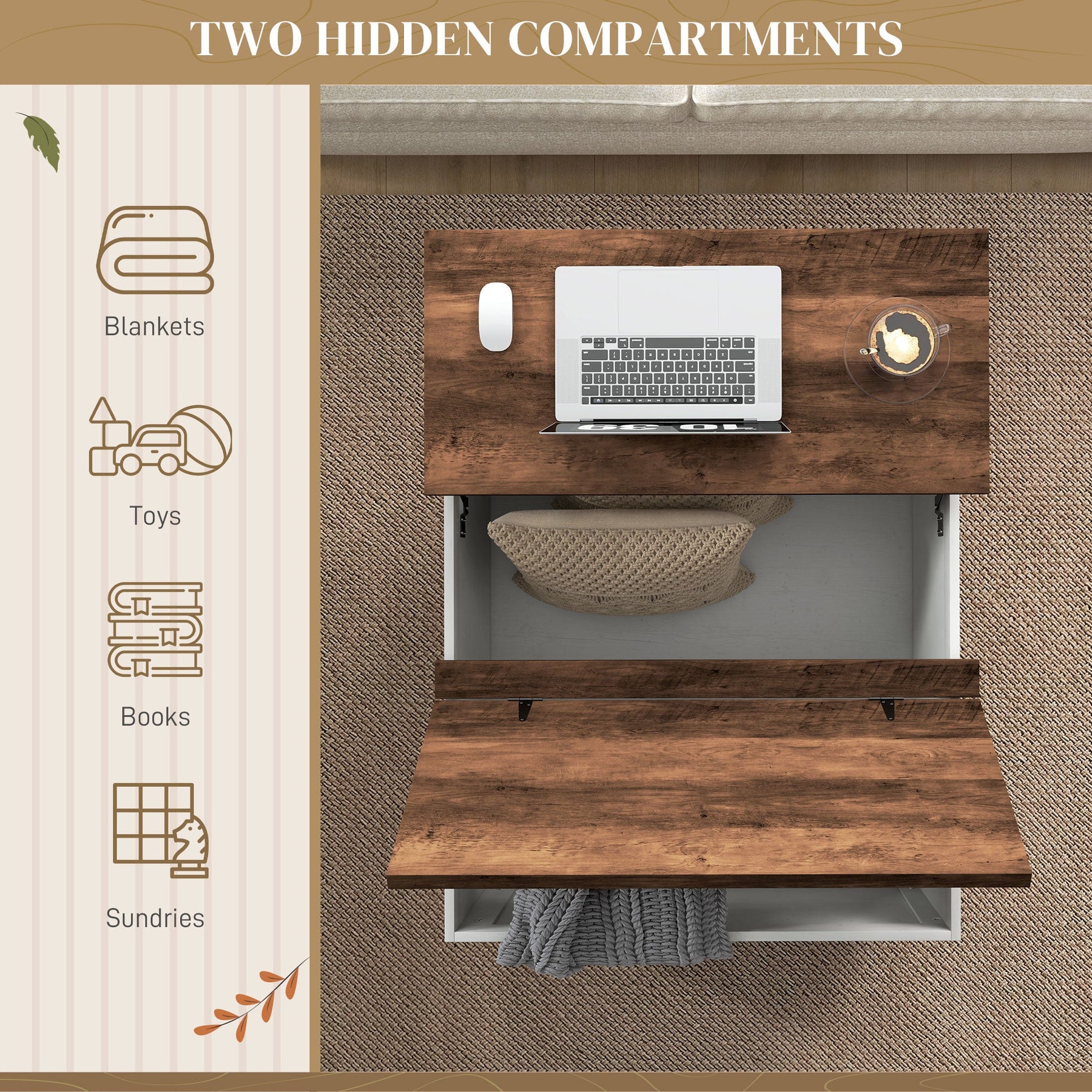 Flip-Top and Lift-Top Design: Divided top with both flip and lift-top features for easy access to hidden storage.