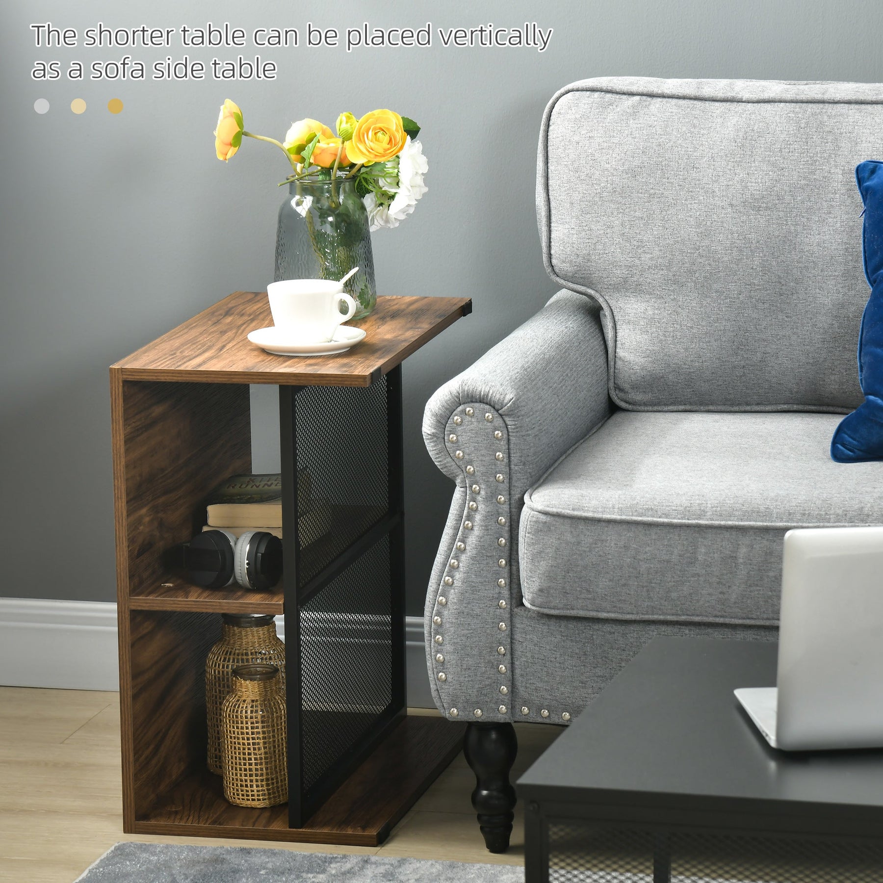 Add industrial charm to your home with this set of two nesting coffee tables. Combining rustic wood finished boards, mesh panels, and a black steel frame, these tables bring a unique, stylish touch to your living room. The smaller table can be used vertically as a two-tier end table next to your sofa, while both tables nest together when not in use, making them perfect for saving space. With two open storage shelves, the smaller table offers convenient space for snacks, drinks, or board games. Built with a sturdy steel frame, these nesting tables are ideal for holding heavy items like drinks, vases, and more. Designed for both form and function, these tables are a versatile addition to any home.