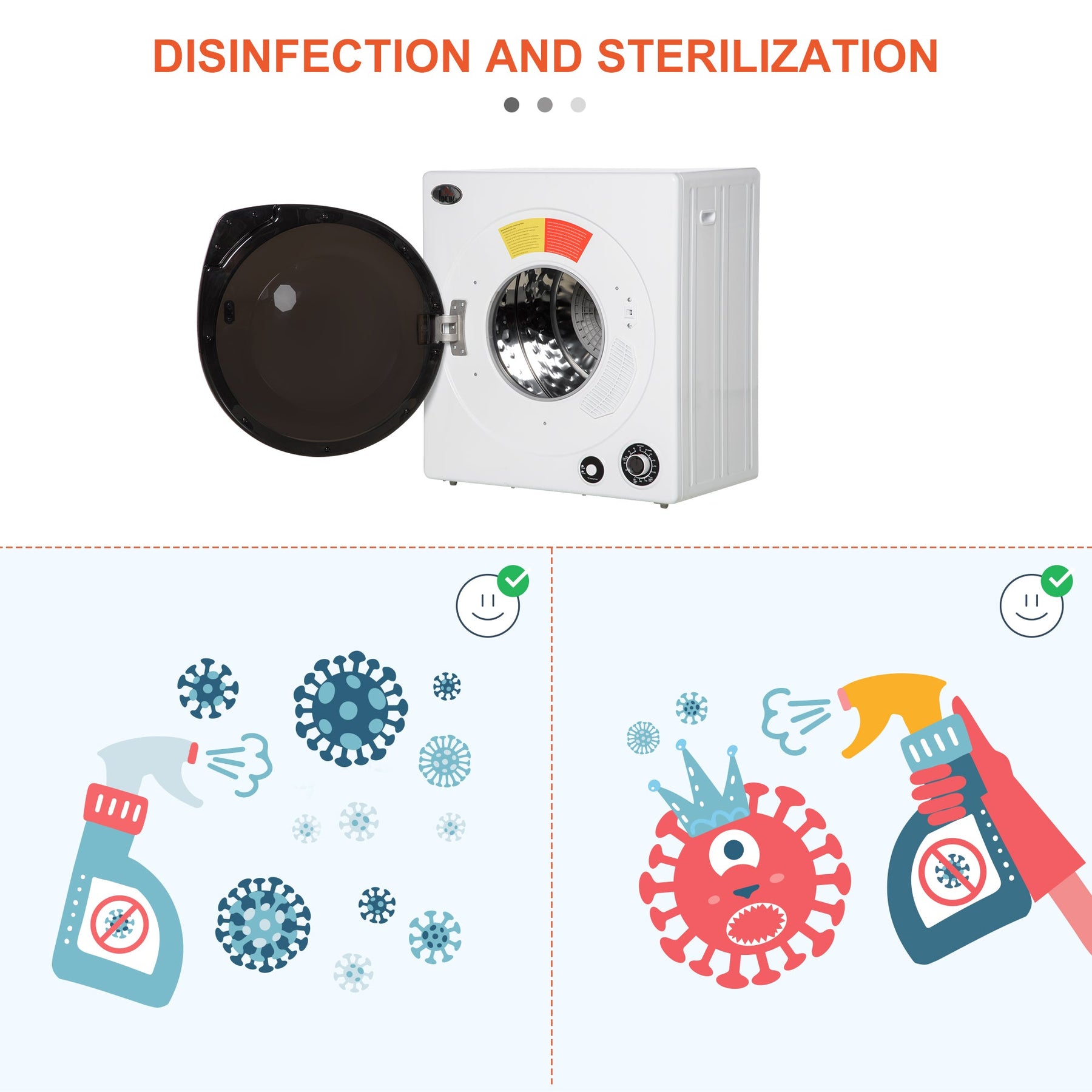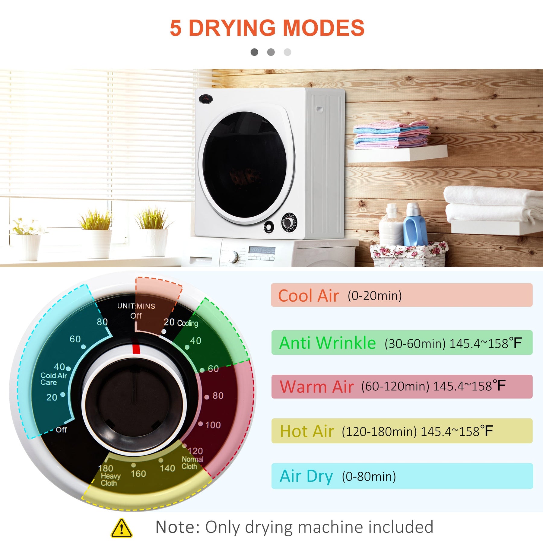 HOMCOM Compact Laundry Dryer, 1350W 13lbs Portable Dryer with 5 Drying Modes,Stainless Steel Tub for Apartment, Home, Dorm, White