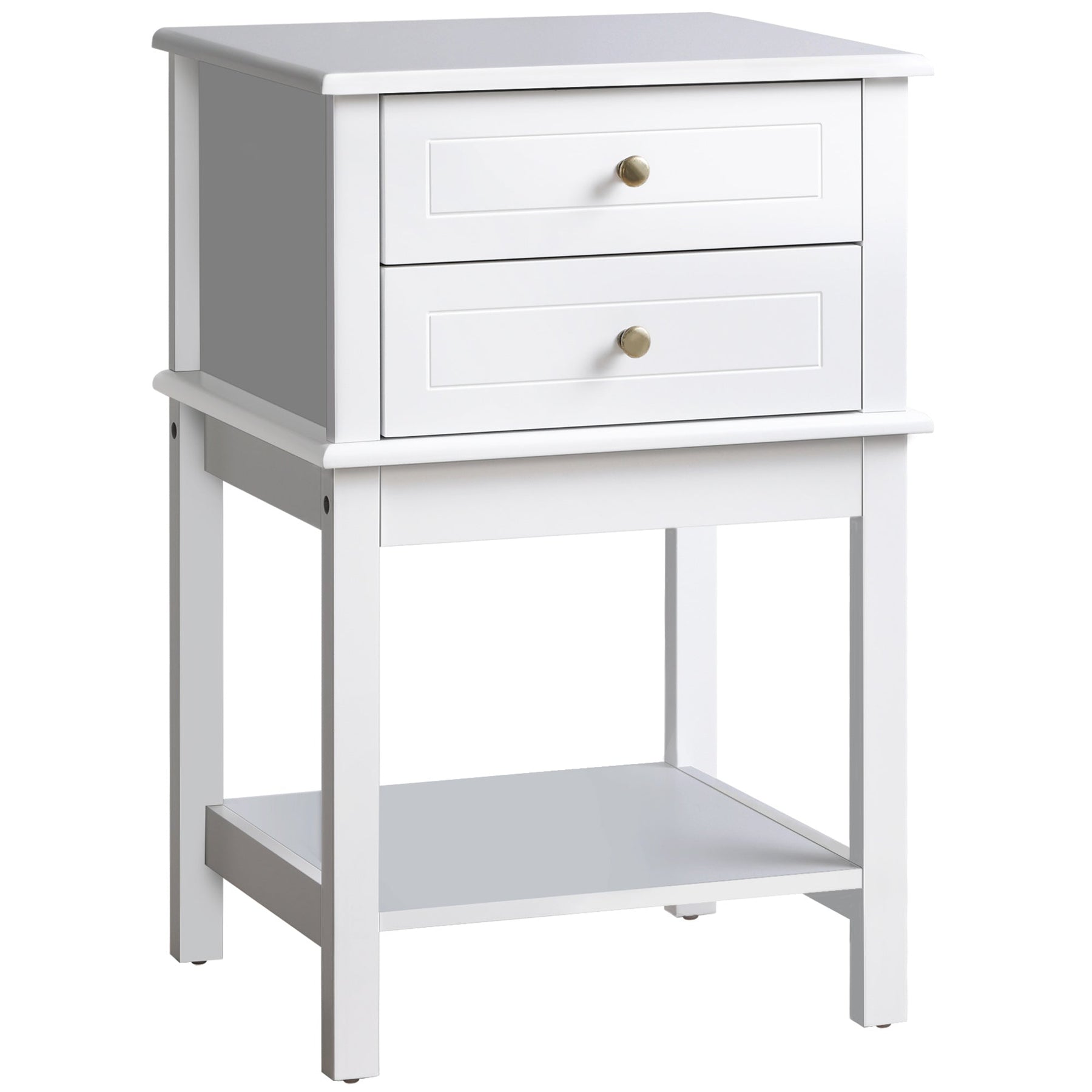 Spacious Storage: Features a smooth top, storage drawers, and a lower shelf for books and items.