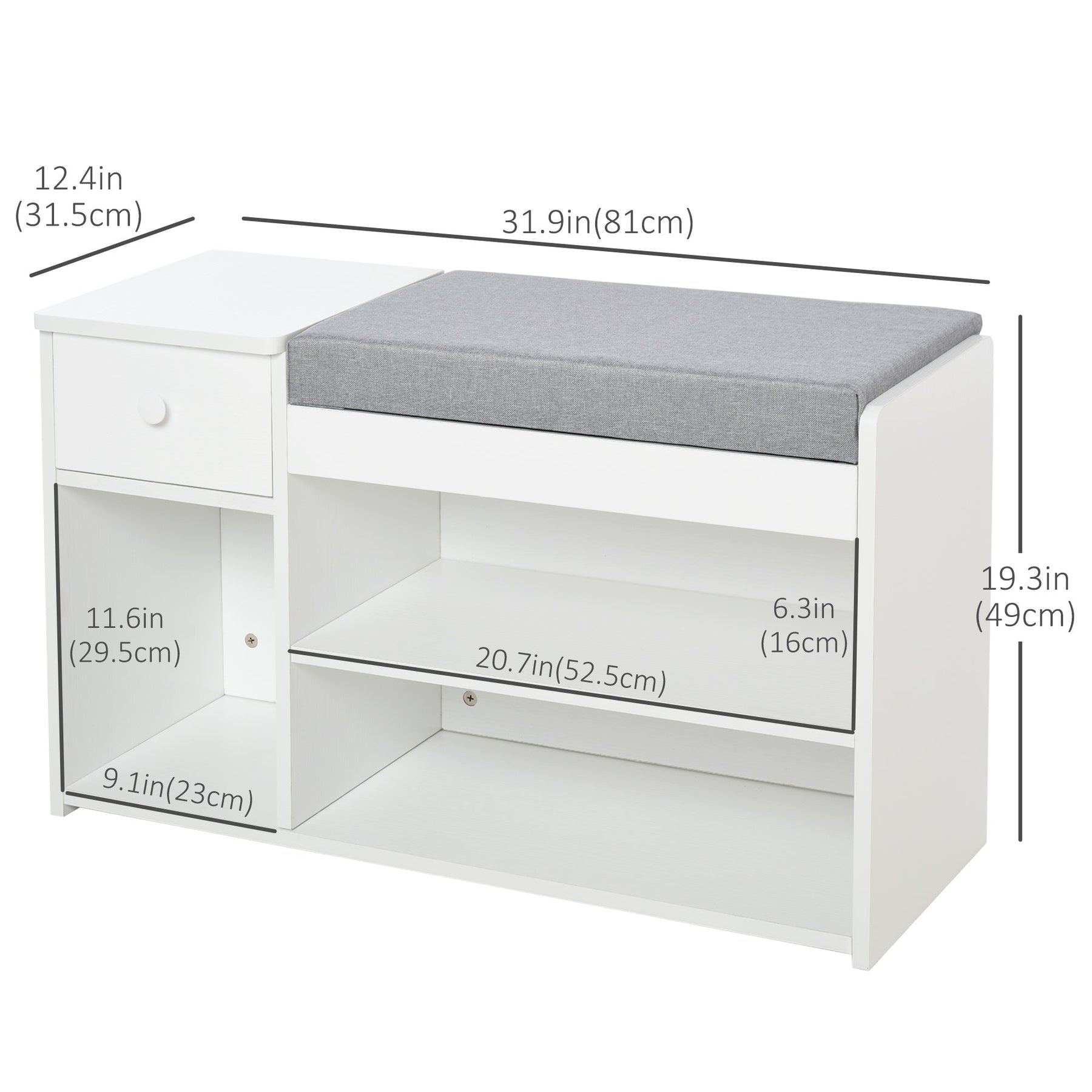 Add both function and style to your home with this modern shoe rack bench. Designed with a sleek panel and neutral tones, it seamlessly blends with most home décor. This versatile piece can be used as a shoe storage bench in your entryway or as a small seat in various spaces such as the cloakroom, bedroom, or living room. The bench offers ample storage with a pull-out drawer for sundries and open shelves to neatly store shoes. The thick padded cushion wrapped in breathable linen fabric provides a comfortable seating experience, and the zippered cushion cover is removable for easy cleaning. Crafted from solid engineered wood, this storage bench ensures durability and reliability for years of use.