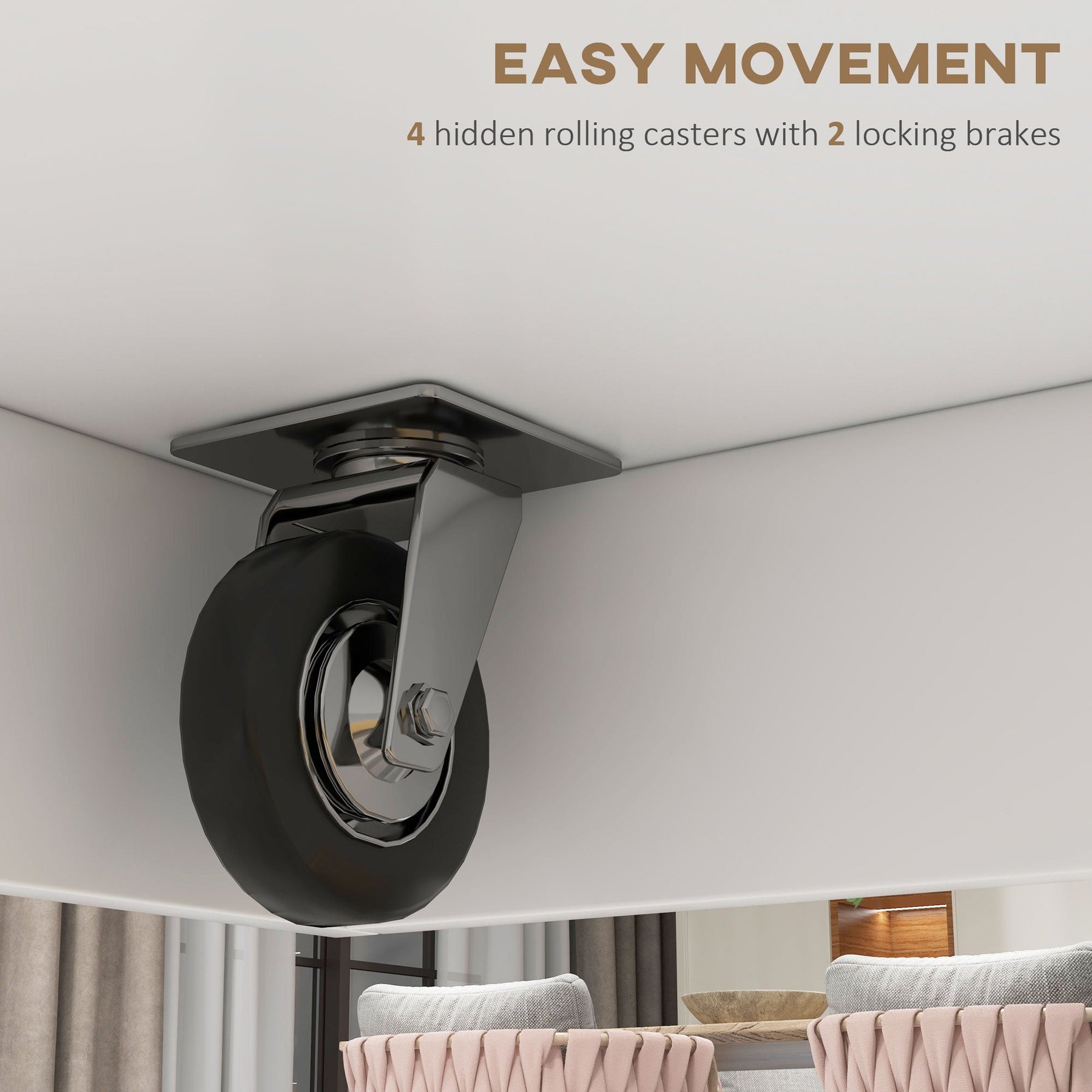• Four concealed wheels provide smooth mobility for easy repositioning in the kitchen
