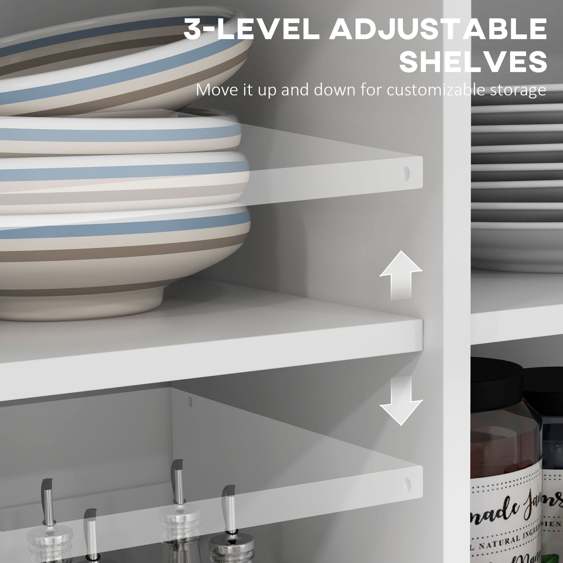 • Adjustable shelves allow for customizable storage options