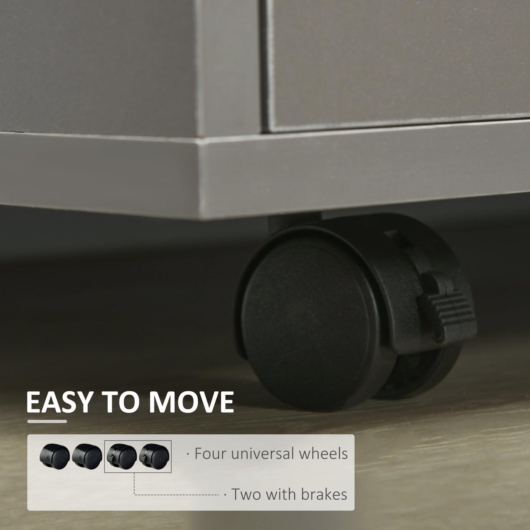 This modern-style printer stand combines functionality with a sleek, all-match design, making it the perfect addition to both your home and office spaces. Its clean lines and simple structure allow it to blend seamlessly with other furniture. Designed with ample storage, it features three drawers and two open shelves, offering spacious room to store A4 or Letter size documents, office supplies, and other stationery. The top of the stand can accommodate a printer or scanner, helping you stay organized and efficient. For added convenience, the shelf inside the cabinet is adjustable to fit your unique needs, and the stand is equipped with four caster wheels, two of which have brakes for enhanced stability and mobility. Made from reliable particle board, this printer cart is built for durability and long-lasting use. Perfect for maximizing storage and keeping your workspace tidy.