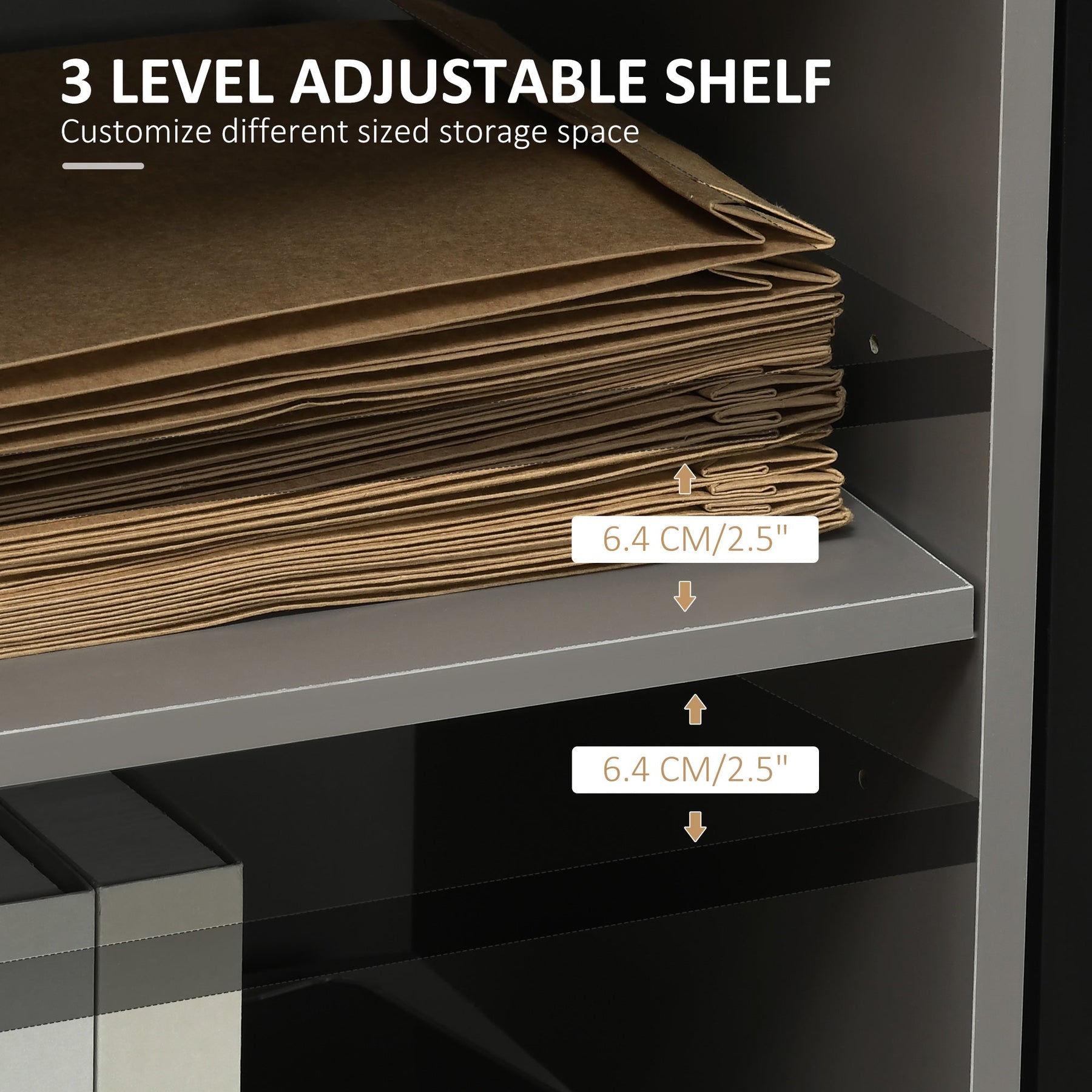 Spacious storage with three drawers and two open shelves for documents and supplies