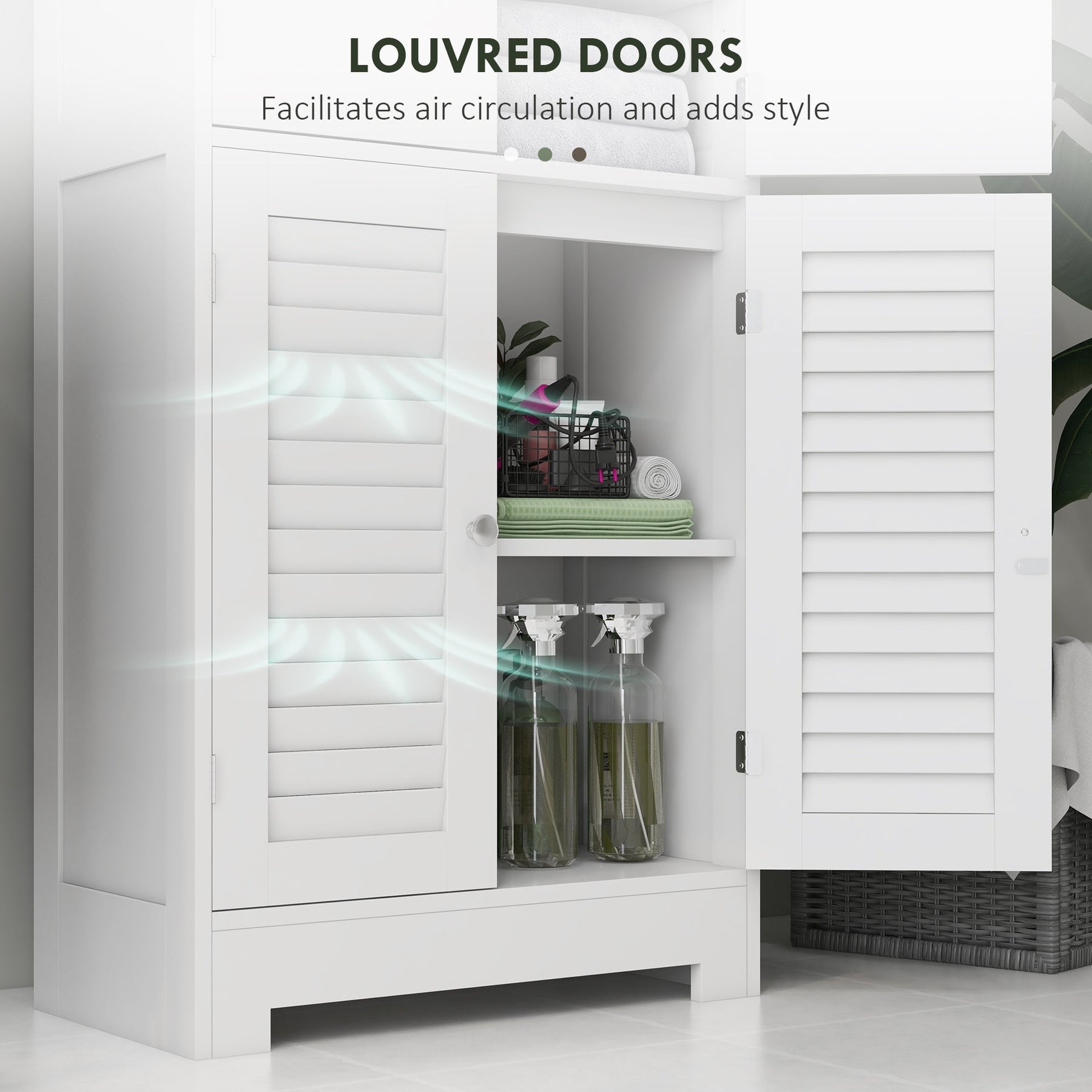 This tall storage cabinet offers a spacious and elegant solution for organizing your home. Featuring 3 double-door compartments, including an adjustable shelf in the middle cabinet, it’s perfect for organizing toiletries, linens, books, kitchen items, and more. The louvred door design not only enhances the cabinet's aesthetic but also improves air circulation, making it ideal for use in bathrooms or other moisture-prone areas. With a modern design incorporating 3 distinct door types—glass, slab, and shutter—this cabinet adds a touch of sophistication to any room. Crafted from painted MDF, it blends style, functionality, and safety with features like an anti-tipping design and non-slip foot pads. Perfect for any room in your home, this versatile cabinet is a practical and stylish addition.