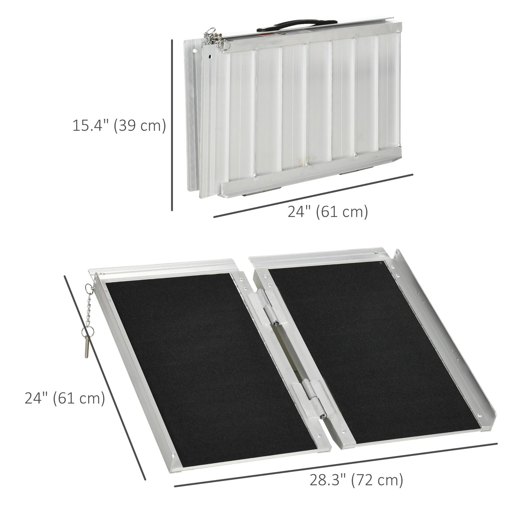 This portable wheelchair ramp is the ideal solution for providing access to various spaces with ease. Whether you’re using a wheelchair, walker, or rollator, this ramp is designed to offer a safe and accessible entry in any weather. The sturdy aluminum alloy construction ensures it is both strong and durable, while the non-slip surface adds extra security. Two guardrails on either side prevent accidental falls, and the ramp's anti-slip plastic grip surface ensures stability even in wet conditions. When not in use, the ramp easily folds into a compact, suitcase-style design for convenient storage and transport. Perfect for home or public spaces, this portable ramp can be used anywhere to ensure a safe and smooth transition.