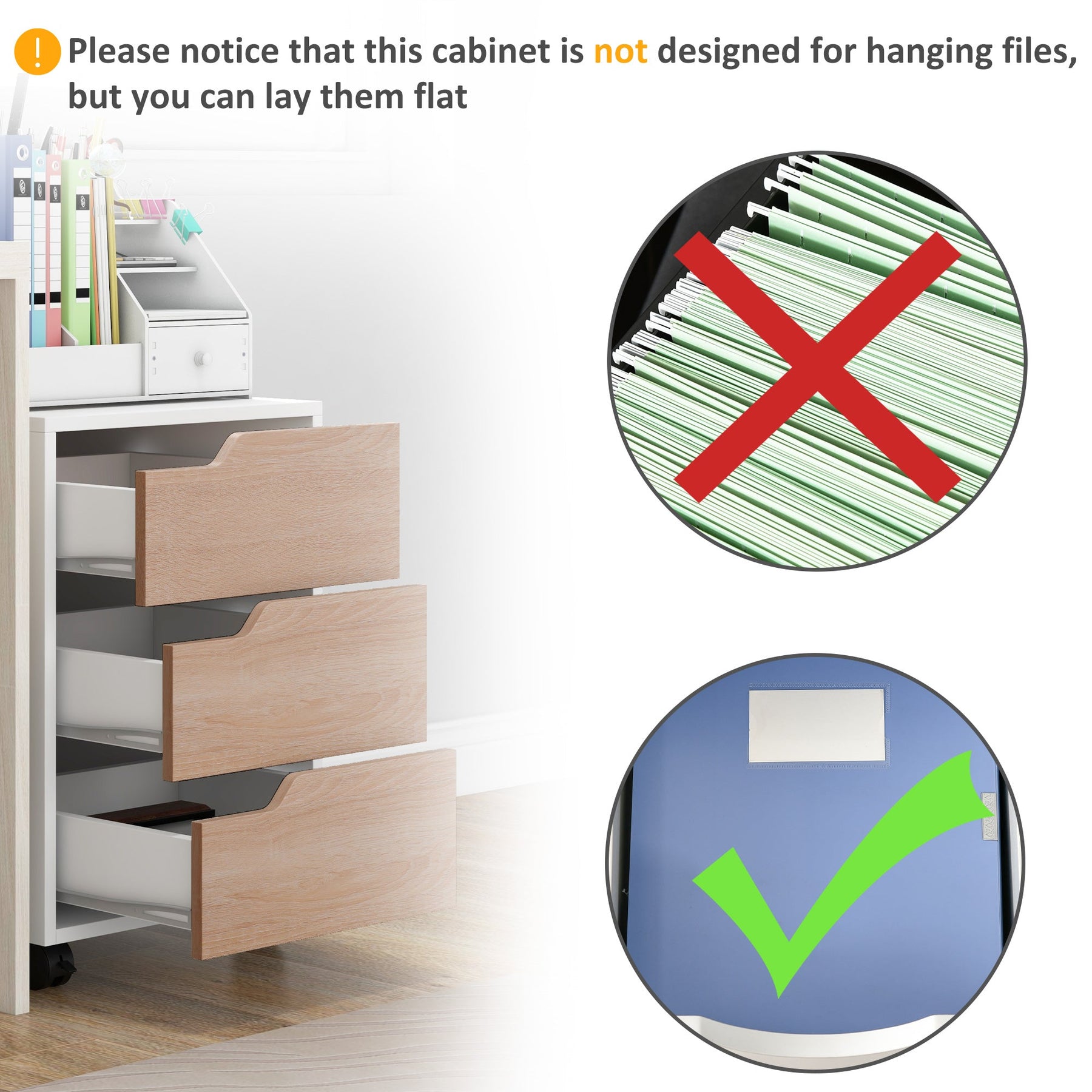 Stay organized and efficient with this stylish three-drawer office storage organizer, designed to store all your office essentials in a sleek and compact unit. Perfect for holding files, notebooks, pens, magazines, and other office supplies, it provides a large storage capacity while maintaining a modern, minimalist design that blends seamlessly into your office or living room decor. The practical, space-saving size makes it ideal for small spaces, and the groove handle ensures smooth, effortless opening and closing of drawers. Constructed from durable MDF, the surface is robust enough to handle everyday use. Equipped with four omnidirectional wheels, this mobile filing cabinet is easy to move around, with two wheels featuring brakes to securely lock it in place when needed.