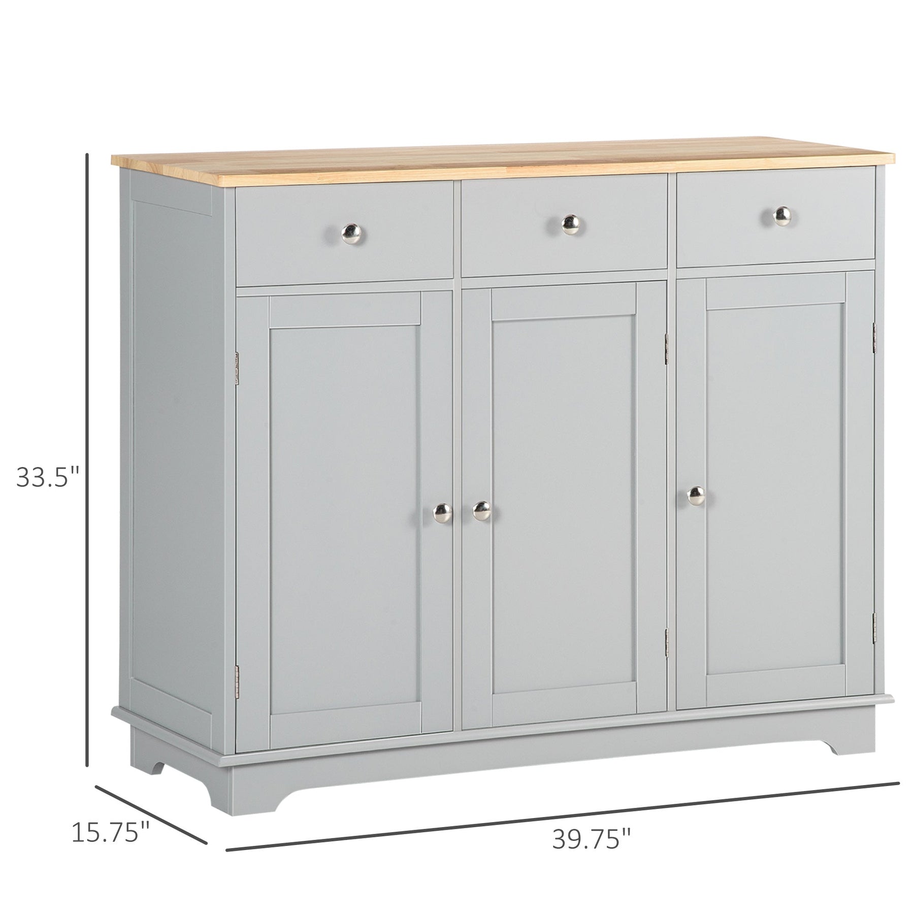 This versatile kitchen storage cabinet provides ample storage space and a sleek design, perfect for organizing your home while enhancing its aesthetic appeal. Featuring large drawers ideal for utensils, napkins, or smaller items, and door cabinets designed to store plates, plastic containers, pots, and pans, this cabinet offers roomy storage solutions. The adjustable shelf inside allows you to easily customize the storage height across three different levels, or even remove the shelf entirely based on your needs. Its attractive design seamlessly blends with any home décor, making it a perfect addition as a sideboard in the dining room, a storage unit in the entryway, or an accent cabinet in the living room. The cabinet is built with durability in mind, featuring a rubberwood tabletop that provides stability, along with anti-tipping hardware that ensures safety by allowing you to securely mount it to the wall. Assembly is required for this functional and stylish storage unit.