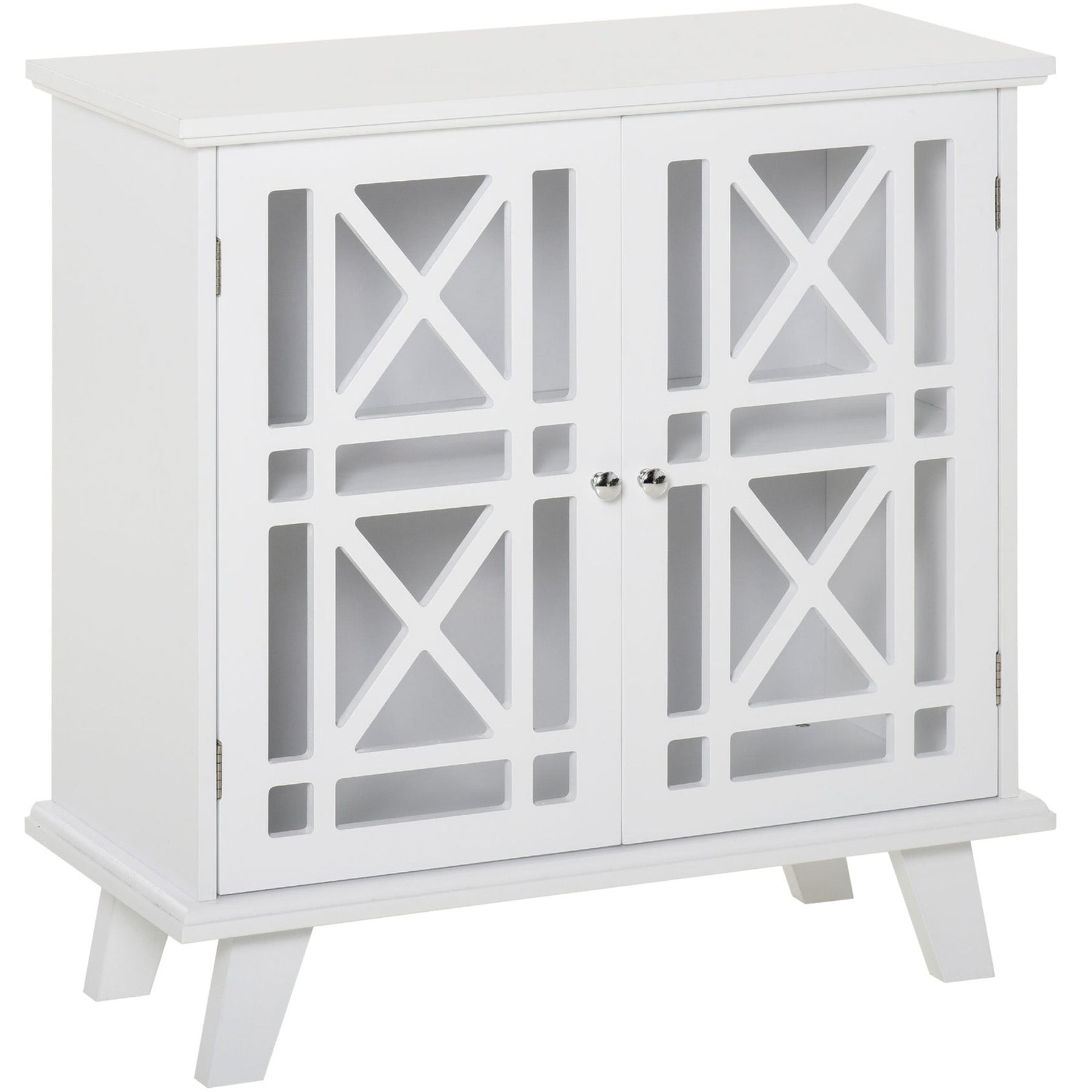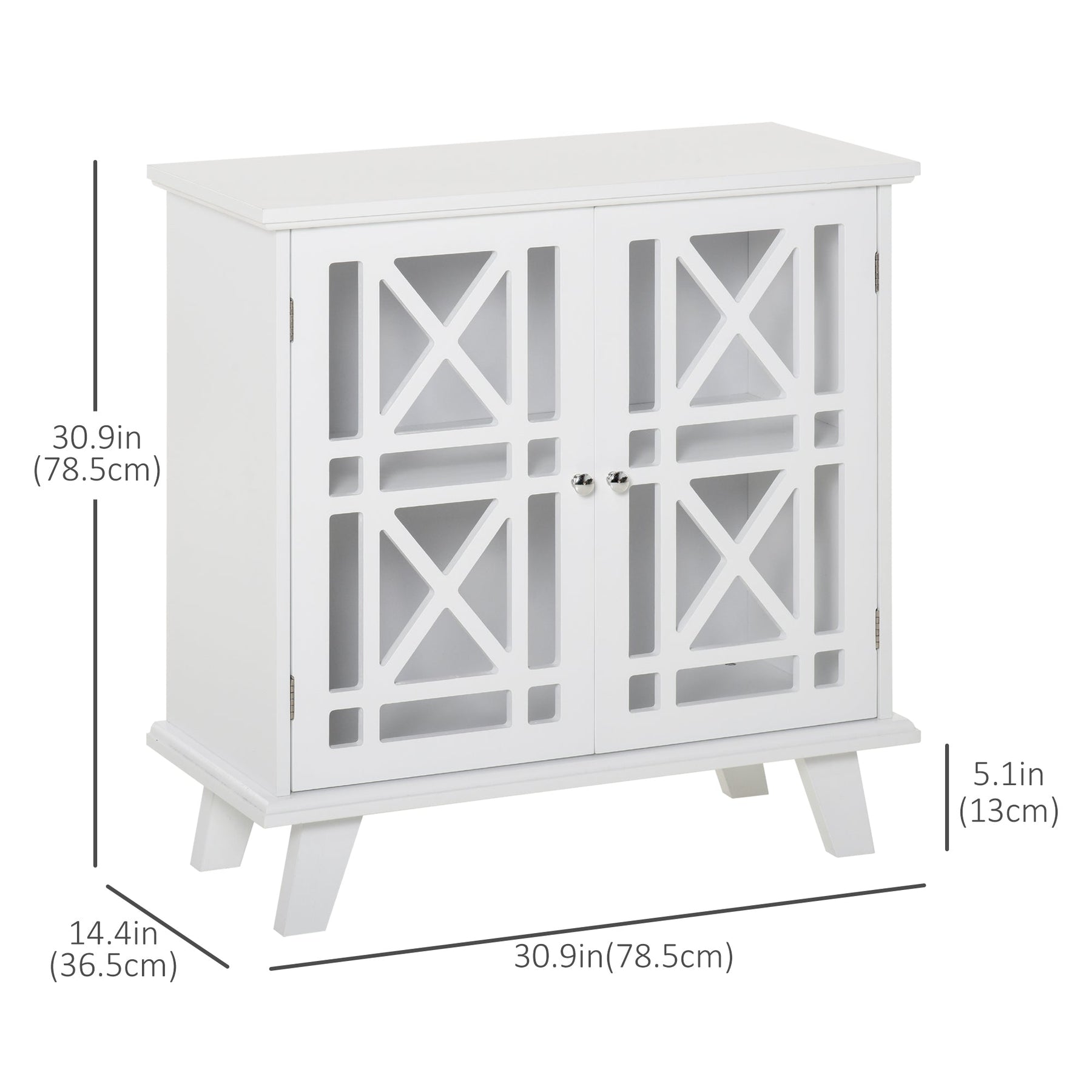 This elegant accent cabinet features a French-inspired fretwork design that brings an air of sophistication to any room. The front doors are not only stylish but also provide ventilation to keep the interior fresh, making it perfect for storing daily accessories, utensils, dry goods, DVDs, linens, towels, and more. With its spacious storage capabilities and versatile design, this cabinet serves as a buffet, storage unit, or TV console, making it ideal for use in the entryway, dining room, living room, bathroom, or kitchen. Built with painted MDF, this cabinet ensures a sturdy structure and easy maintenance, while its elevated base design protects it from moisture damage. Additionally, an anti-tipping design is included to secure the unit to the wall, ensuring safety and stability.