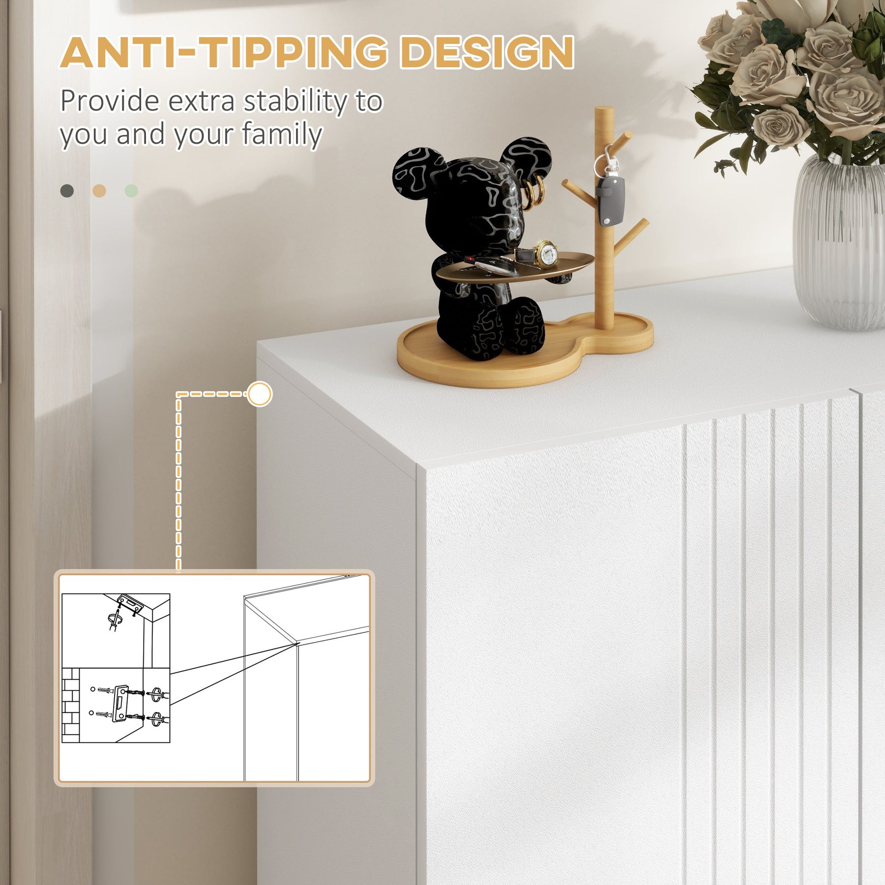 Anti-tipping straps for secure wall attachment
