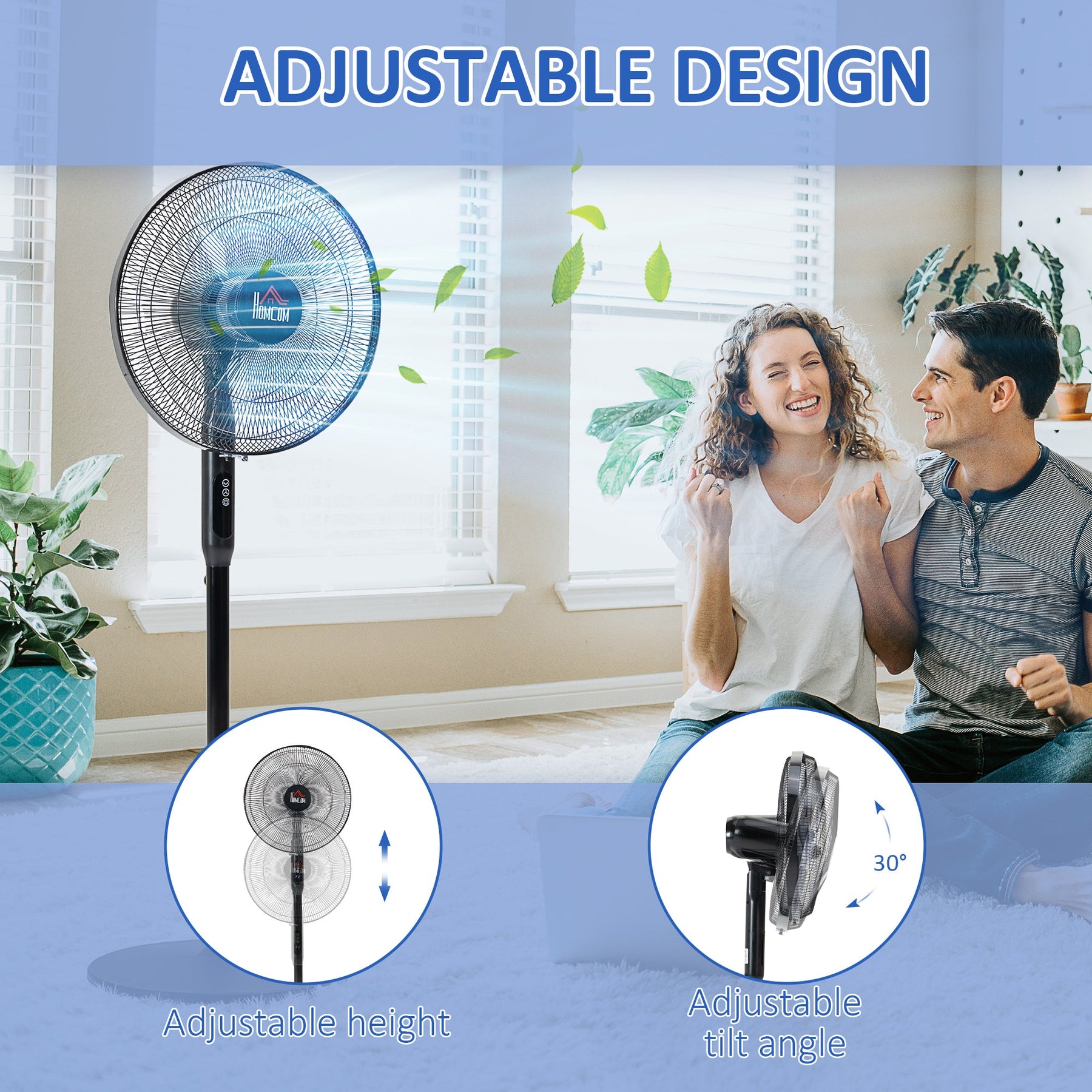 • 85° oscillation and adjustable height (3 levels) for better air circulation.