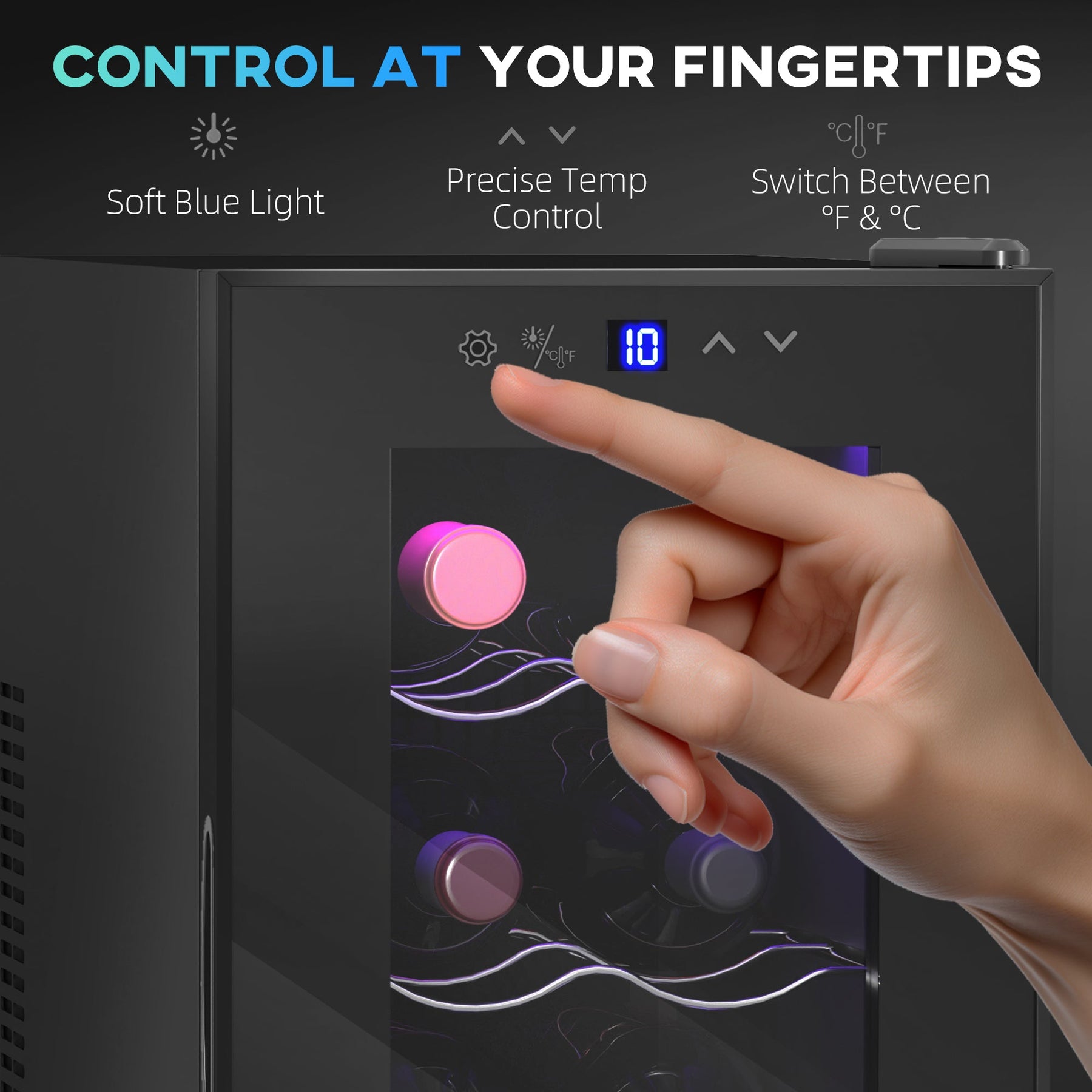 HOMCOM Quiet Wine Cooler Refrigerator, 8 Bottle, Beverage Wine Fridge with Glass Door, Temperature Control, for Champagne