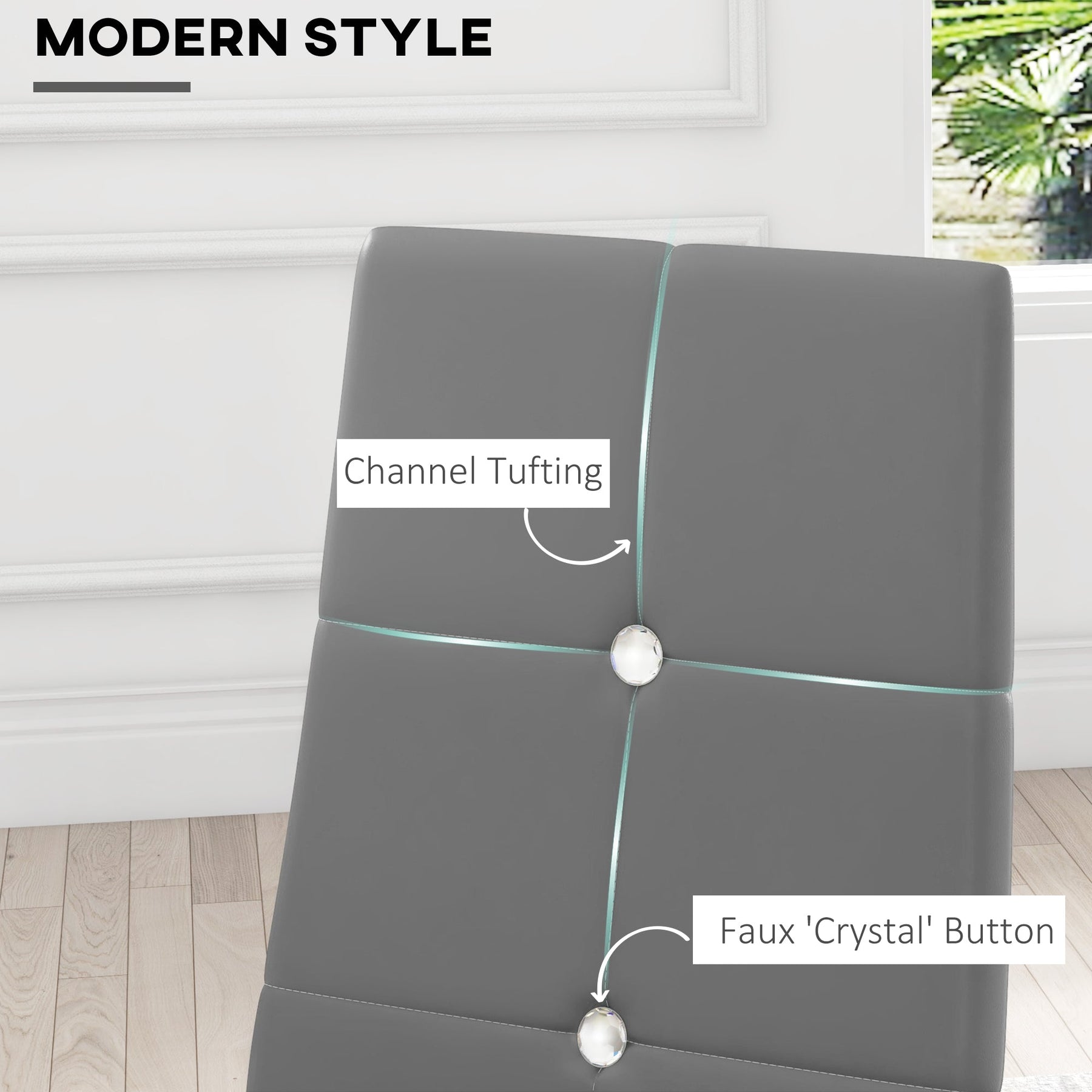 Elevate your dining experience with this Set of 4 Dining Chairs, designed to create a cozy and stylish dining environment for your entire family. The crystal tufting adds a touch of elegance to the modern design, seamlessly blending with any home decor. These chairs are perfect for your dining room, kitchen, or living room, and their armless design ensures they can be neatly stored under tables, maximizing your space when not in use. The ergonomic high back provides optimal support, allowing you to sit back and relax during every meal. Constructed from easy-care PU leather and powder-coated steel legs, these chairs are not only durable but also easy to maintain. With non-skid foot pads, they prevent scratches on your floor and provide stability for a safe and comfortable seating experience.