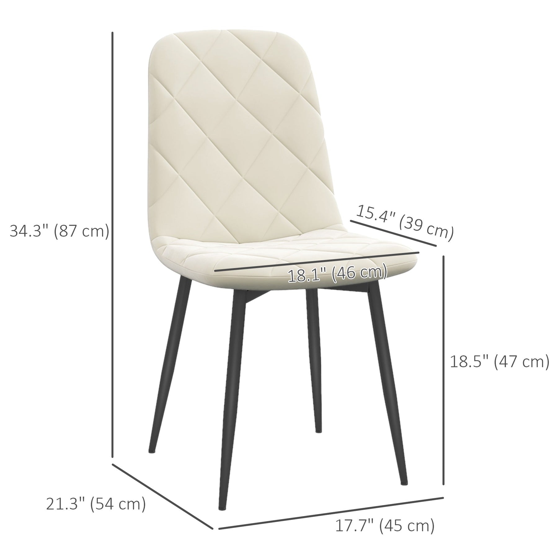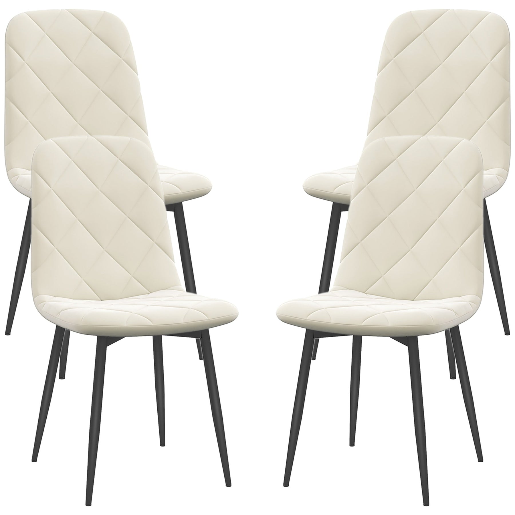 Upgrade your dining space with this elegant Four-Piece Dining Chair Set. Perfectly crafted to enhance the aesthetic of your dining room, these chairs offer both style and comfort. The chairs feature soft velvet-feel fabric, with padded seats and a solid backrest, ensuring a comfortable dining experience for both family and guests. Supported by a powder-coated steel frame, these chairs are built for stability and durability. Their versatile design makes them ideal as accent chairs for the dining room, kitchen, living room, or even a guest room, adding a modern touch to any space.