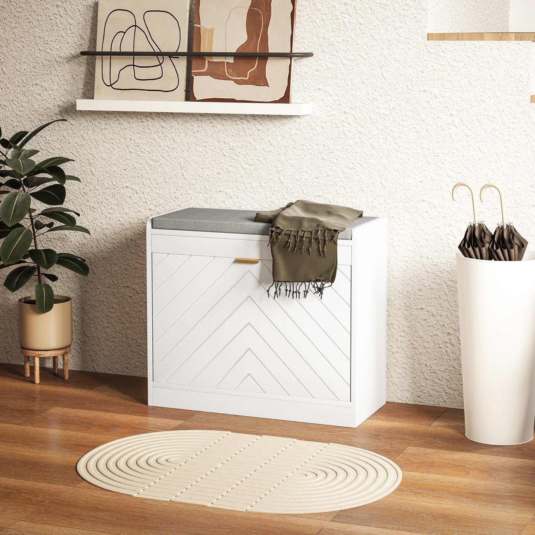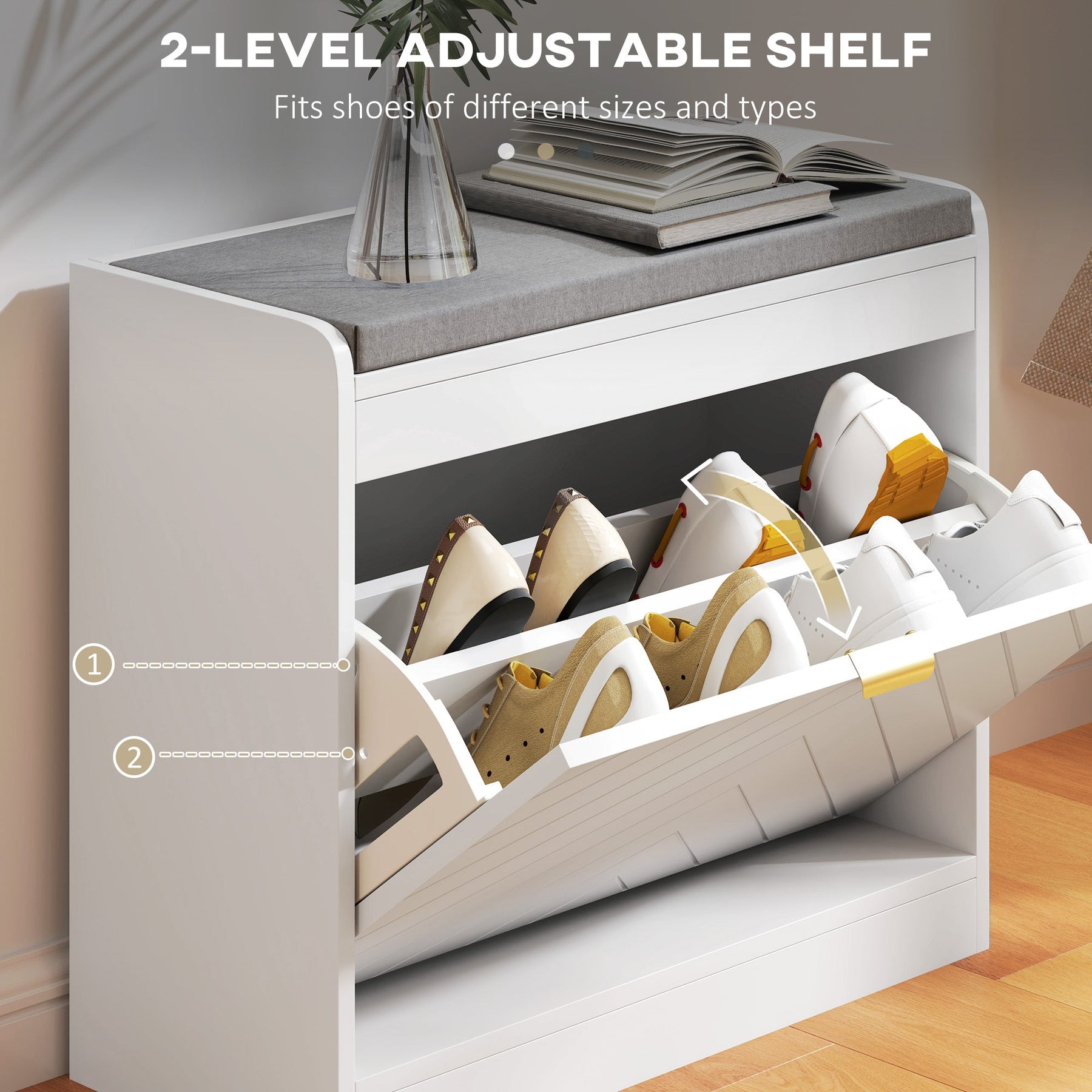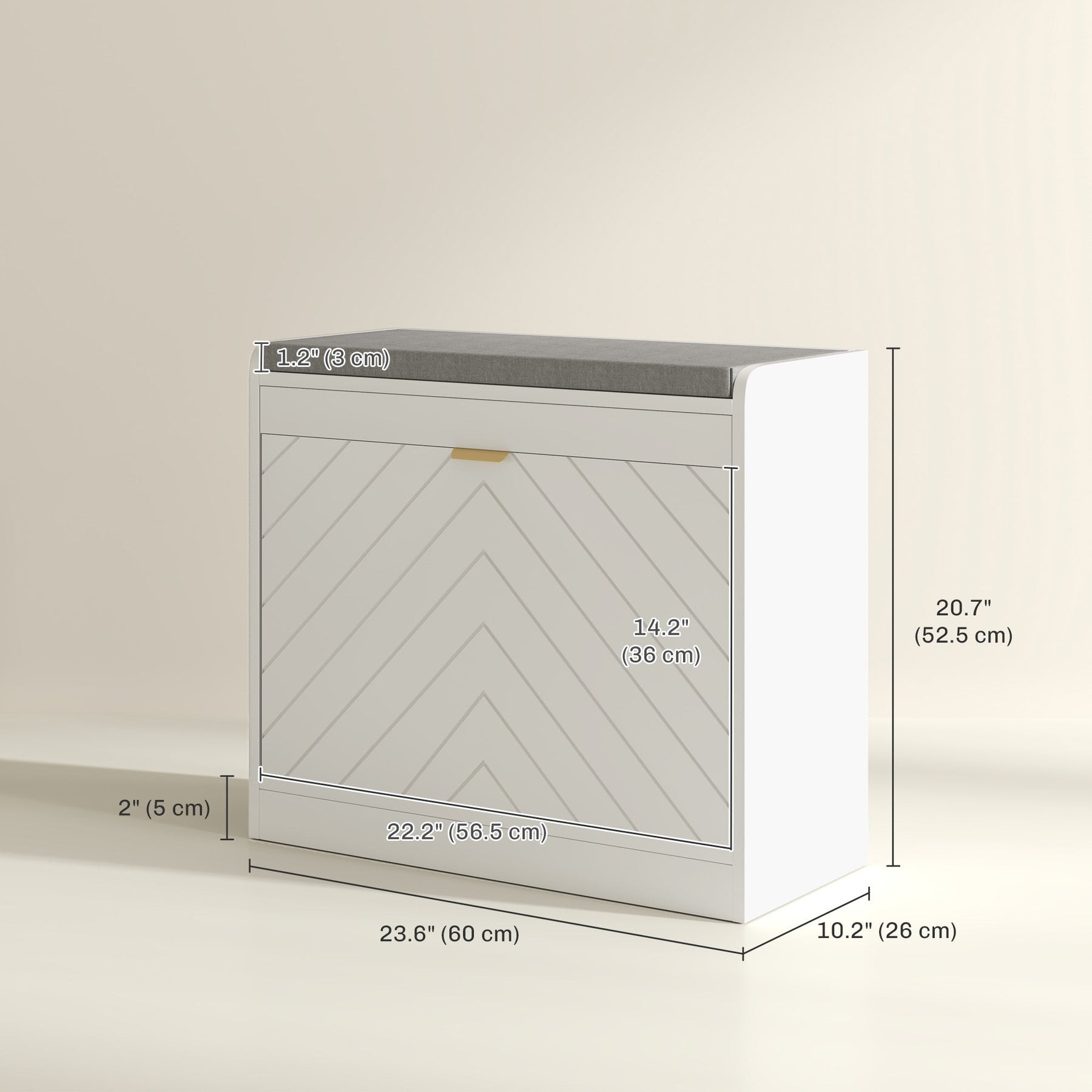 HOMCOM Shoe Storage with Seat, Upholstered Hallway Bench, Shoe Bench with Flip Drawer and Vent for 5 Pairs of Shoes