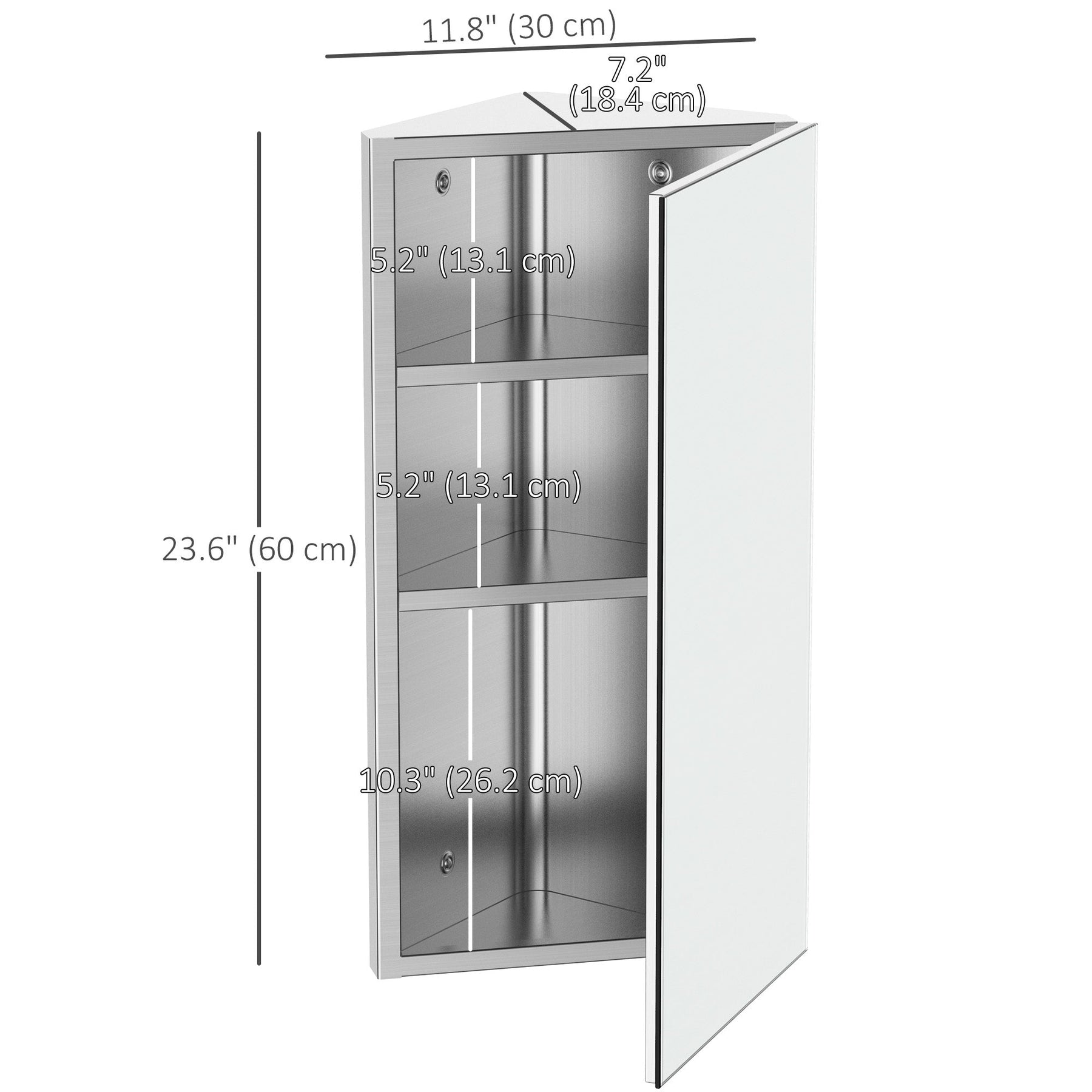 Maximize your bathroom space and enhance functionality with this stylish stainless steel floating corner medicine cabinet. Its sleek, modern design features a clean appearance that seamlessly blends into any bathroom decor. The outside mirror provides a convenient dressing area, while the three storage layers inside offer ample space for toiletries, beauty products, and personal hygiene essentials. This space-saving cabinet is designed to be mounted in the corner of your bathroom, optimizing the room layout while keeping your items organized and easily accessible. Crafted from rust-resistant stainless steel, the cabinet is durable and easy to maintain, making it an ideal addition to any bathroom.
