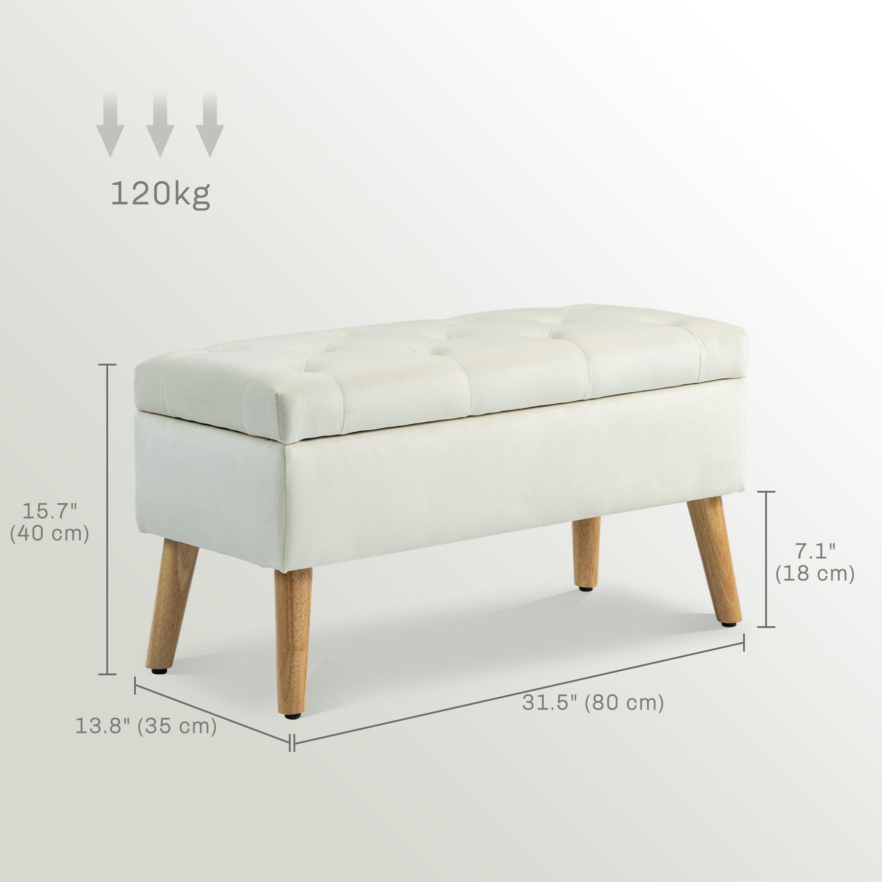 Enhance your home with this elegant and versatile ottoman bench, designed to bring both style and functionality to your space. Showcasing exquisite button tufting and a plush velvet-feel fabric surface, this storage bench adds a sophisticated touch to any room. The lift-top design reveals a spacious hidden storage compartment, perfect for keeping blankets, pillows, or other essentials neatly tucked away. Designed for superior comfort, the thick foam padding and soft fabric offer a cozy seating experience. Built for durability, the solid rubberwood legs provide sturdy support, accommodating up to 265 lbs (120 kg). Whether used as a storage ottoman, footstool, hallway bench, or at the end of your bed, this versatile piece is a perfect addition to your living room, bedroom, or entryway.