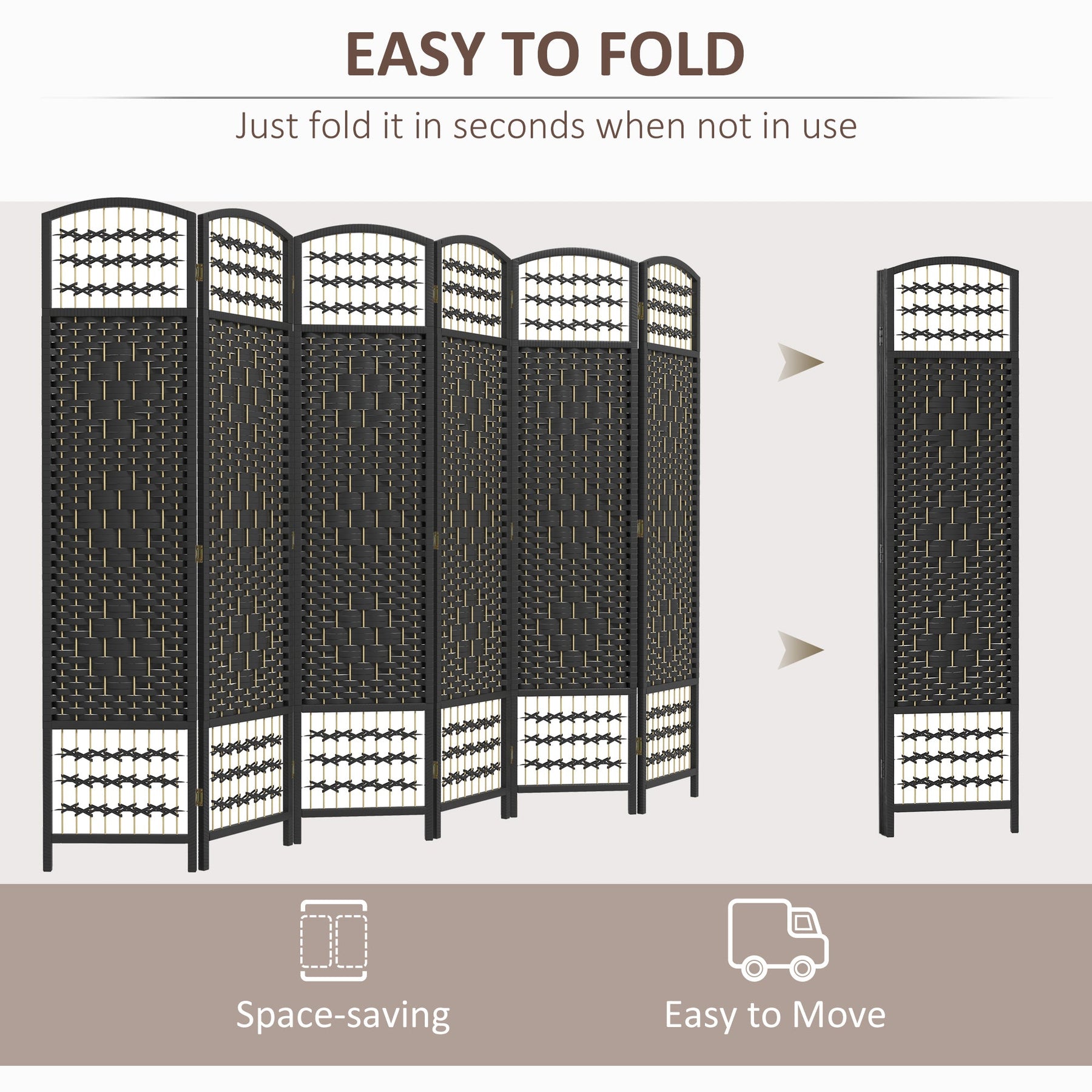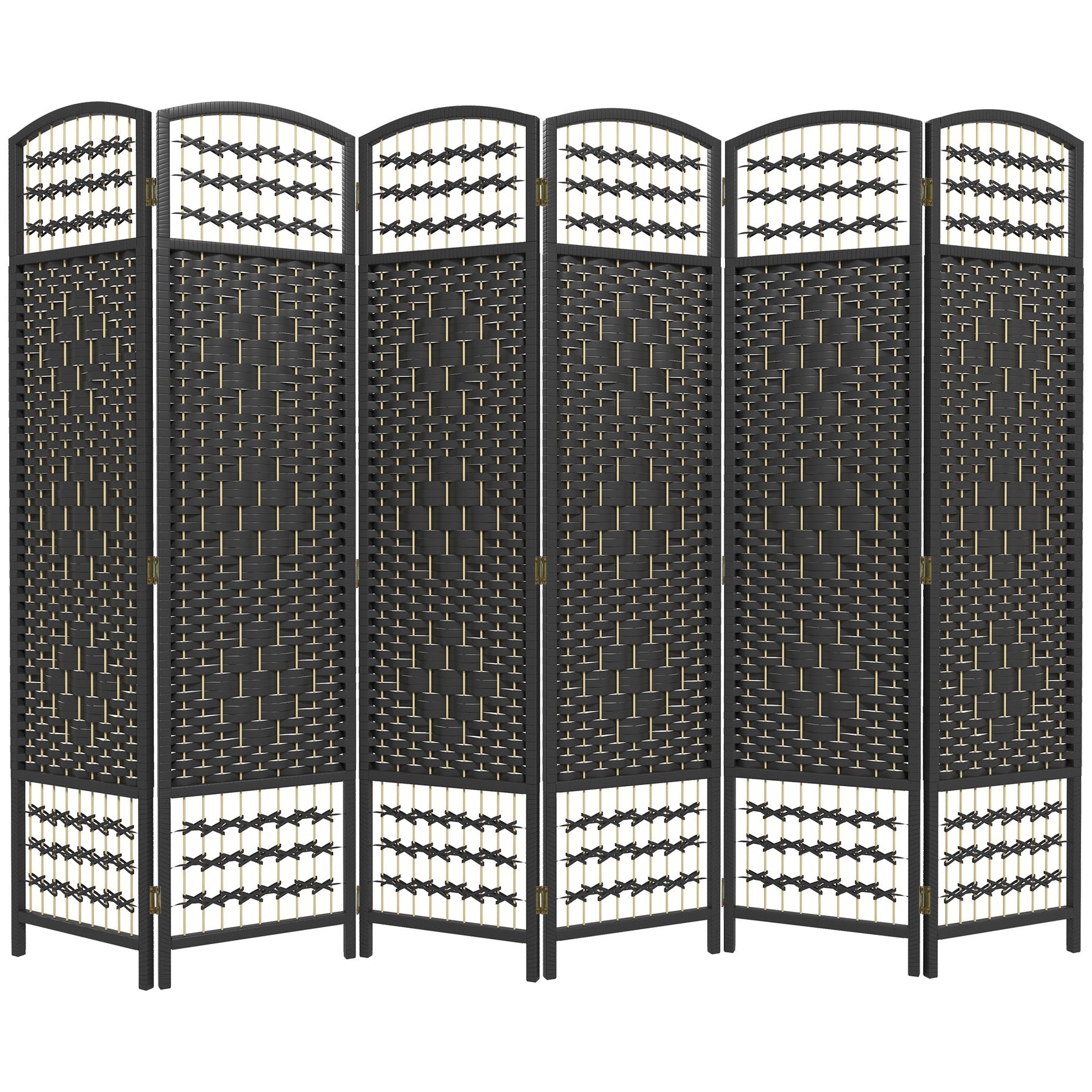 Enhance your space with this stylish 6-panel room divider, designed to provide privacy while maintaining an open and connected atmosphere. Perfect for sectioning off areas in bedrooms, living rooms, offices, or studios, this partition screen adds a cozy and intimate feel to any setting. Featuring a hand-woven design with intricate paper rope and bamboo stick patterns, this rustic yet elegant divider brings warmth and natural charm to your décor. Built with a solid wooden frame, double-sided woven panels, and durable metal hinges, this screen ensures stability and allows for natural airflow and ambient lighting. When not in use, it conveniently folds for compact storage, making it a practical and decorative solution for your space.