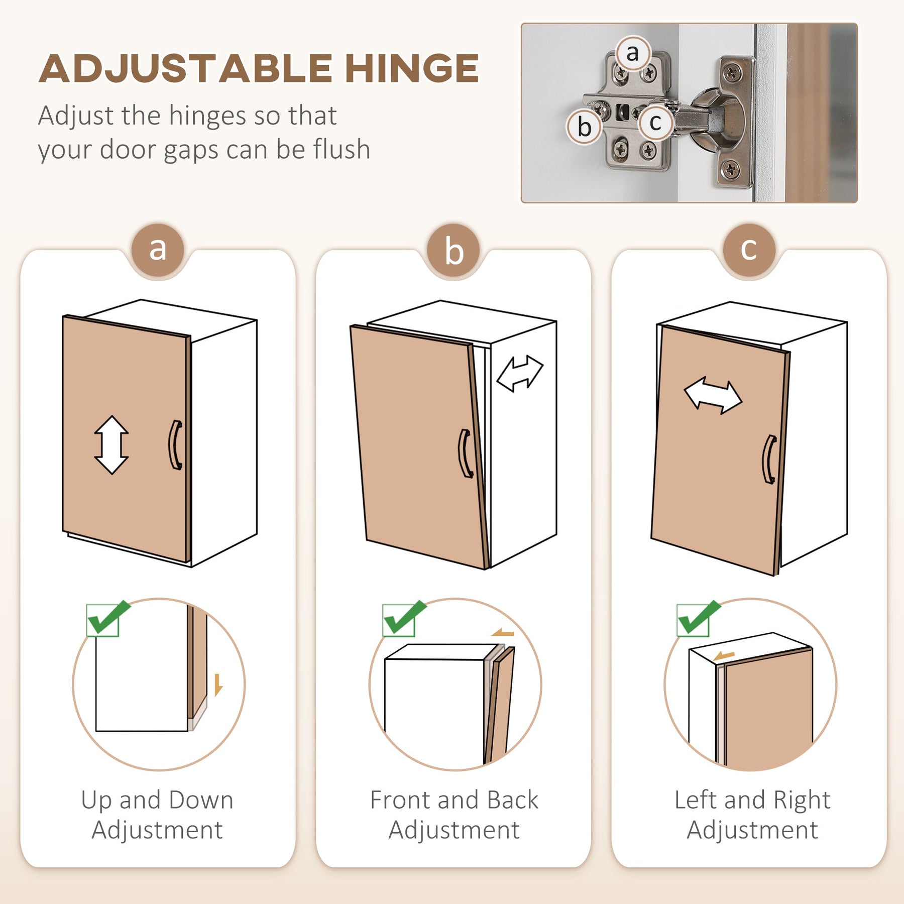 Adjustable top and bottom shelves to accommodate taller items such as pitchers and blenders.