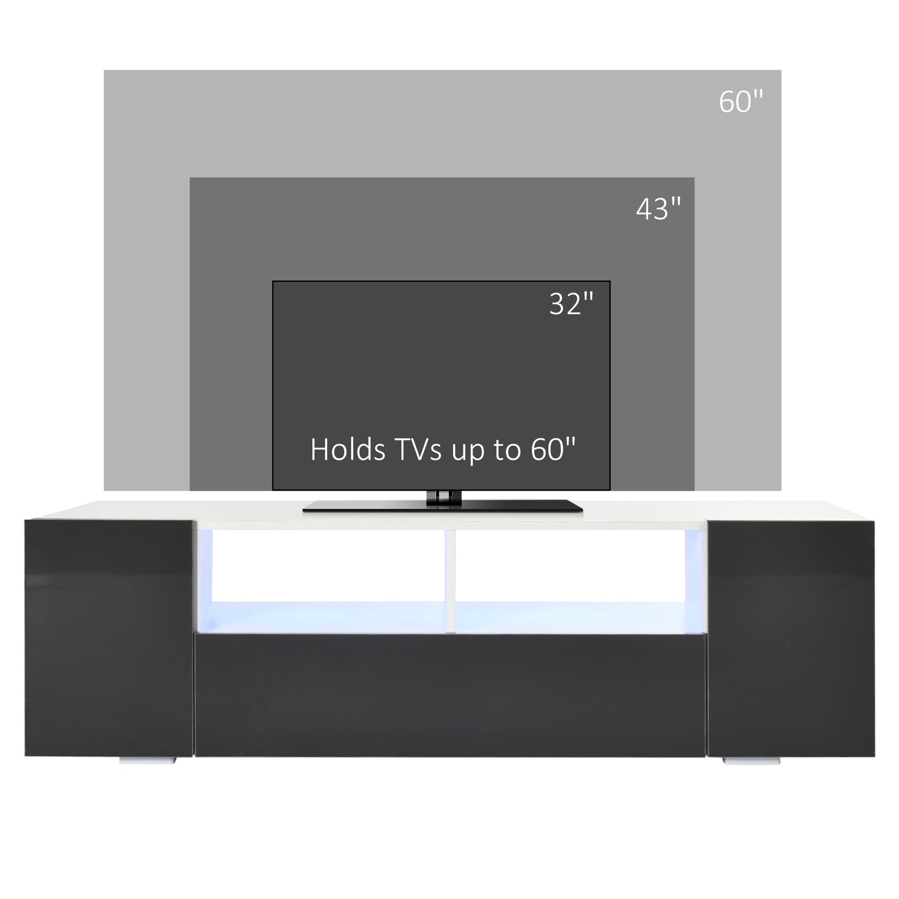 HOMCOM TV Unit for 60 Inch TVs LED Lights Storage Shelves Modern Grey Spacious Living Room Furniture