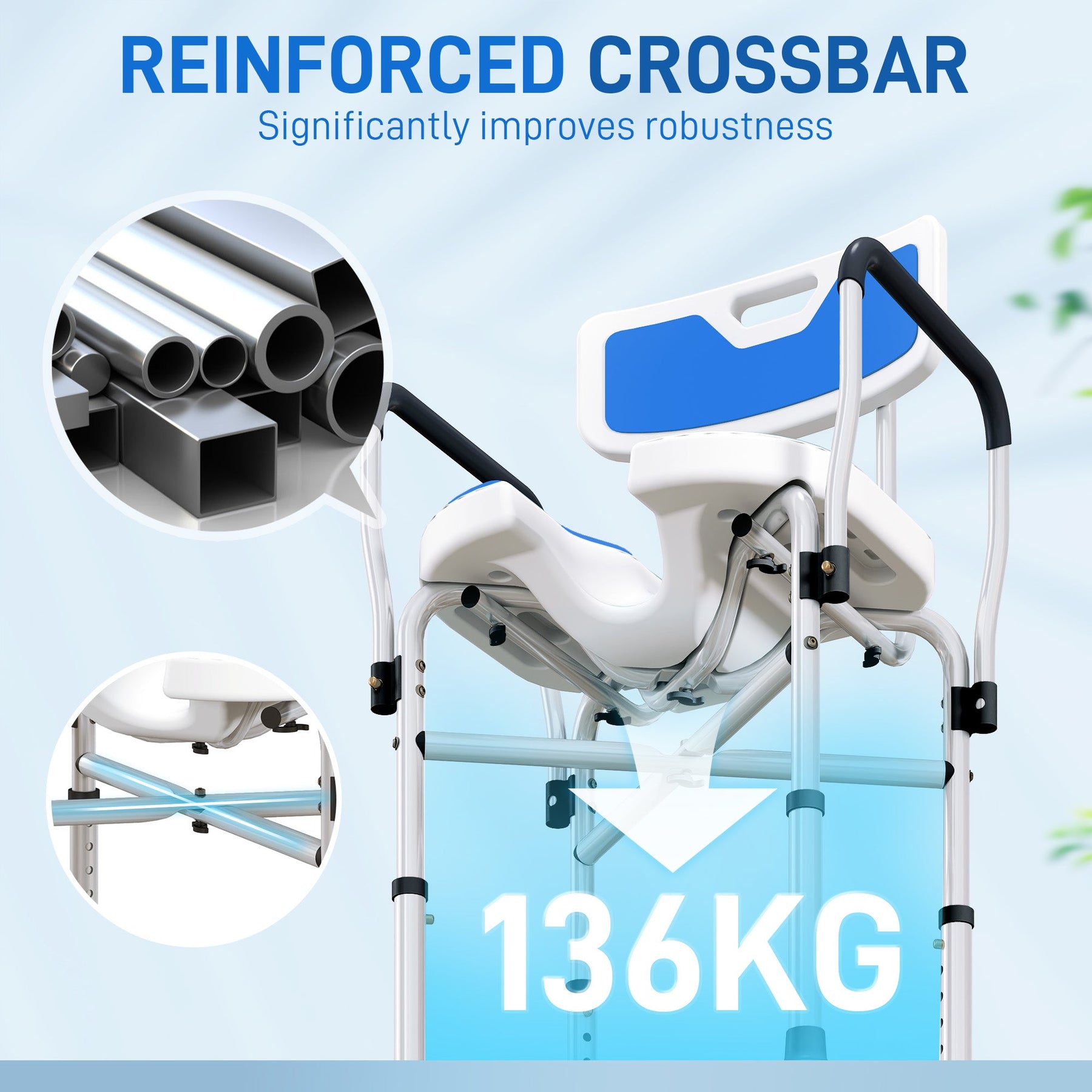 This versatile shower chair is designed for comfort and safety, making it an excellent choice for elderly and disabled users. Featuring a slotted seat with a central U-shaped groove, it allows for easy and effective cleaning while ensuring maximum comfort during bath time. The adjustable height function offers five different levels, ranging from 16.7" to 21.9", accommodating various body heights. Built with a reinforced aluminium frame and high-density polyethylene (HDPE), this chair is strong yet lightweight, with a weight capacity of up to 330 lbs (150 kg). The anti-slip rubber mats and drainage holes in the seat ensure that it stays stable and dry, preventing accidents. With soft padding on the seat and back and comfortable covers on the arm handles, this shower chair guarantees a pleasant and secure bathing experience.