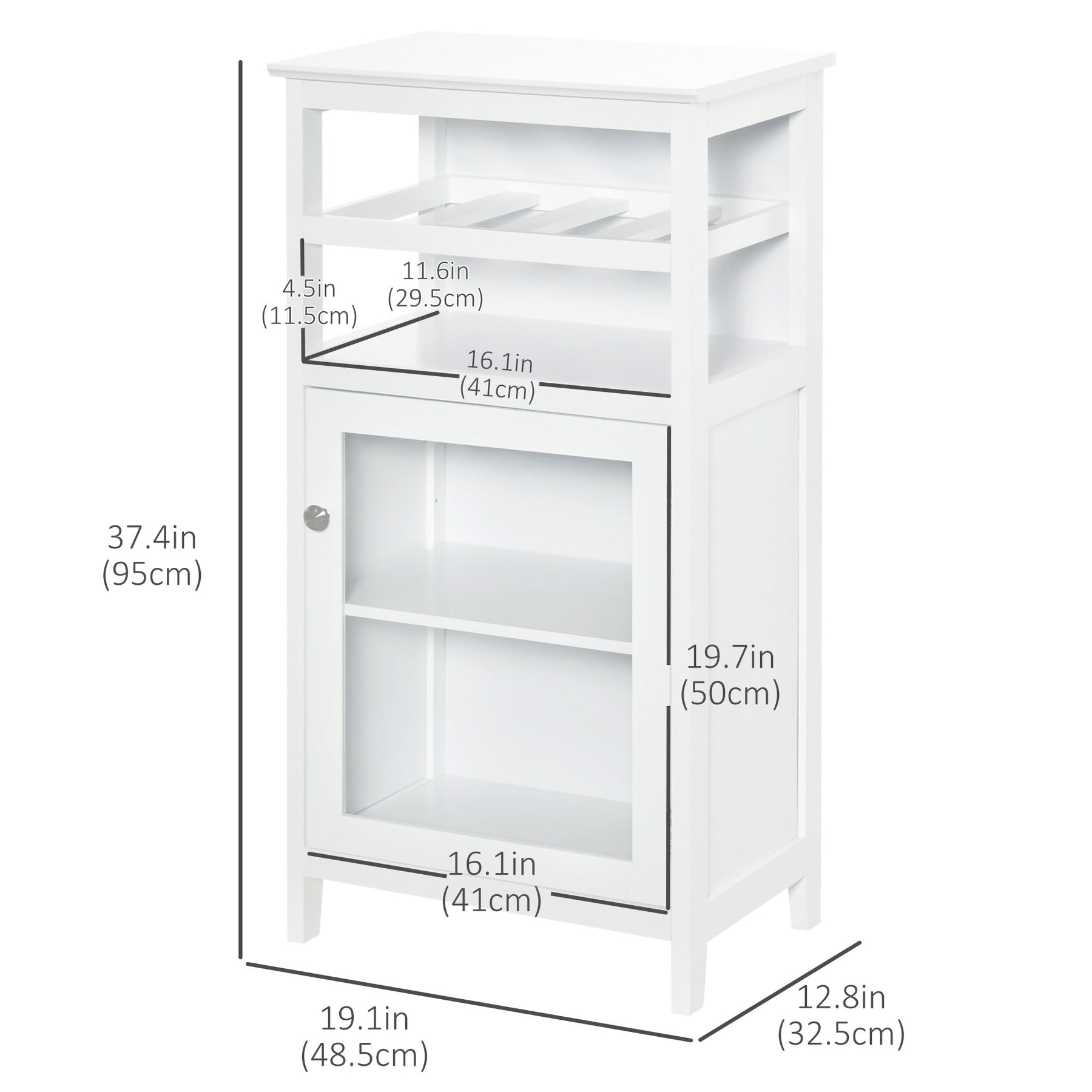 Upgrade your home storage with this versatile and stylish bar cabinet, designed to keep your kitchen and dining essentials organized. Featuring a 4-bottle wine rack, an open shelf, and a concealed cabinet, this unit provides ample space for daily utensils, glassware, and kitchen supplies. The elegant acrylic door adds a touch of sophistication, allowing you to display cherished keepsakes while protecting them from dust. Inside, an adjustable shelf offers flexible storage options for bottles, dishes, or other essentials. Built with an elevated base, this wine rack cabinet keeps your items safe from potential water damage. For added stability and safety, an anti-tipping strap is included to secure the cabinet to the wall, preventing accidental tipping. Compact yet functional, this freestanding liquor and glass cabinet is perfect for kitchens, dining areas, or home bars, adding both style and practicality to your space.